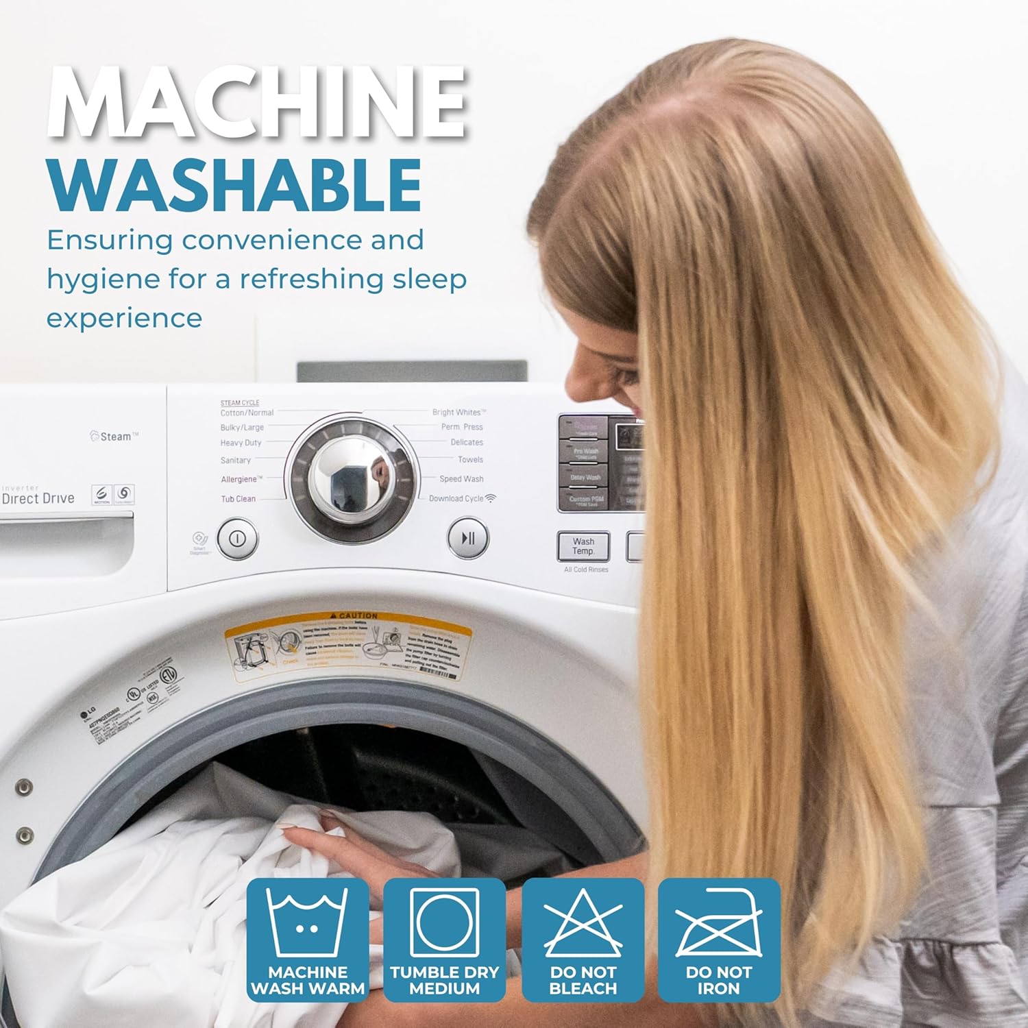 • SOFT & BREATHABLE - Crafted from 100% Fine-Weave Cotton Jersey (130gsm) and free from phthalates, vinyl, and PVC, our zippered mattress protector offers unparalleled softness and breathability, ensuring a safe and comfortable sleep experience. Drift effortlessly into a restful sleep after a long day's work, thanks to the premium comfort and breathability of our mattress cover.