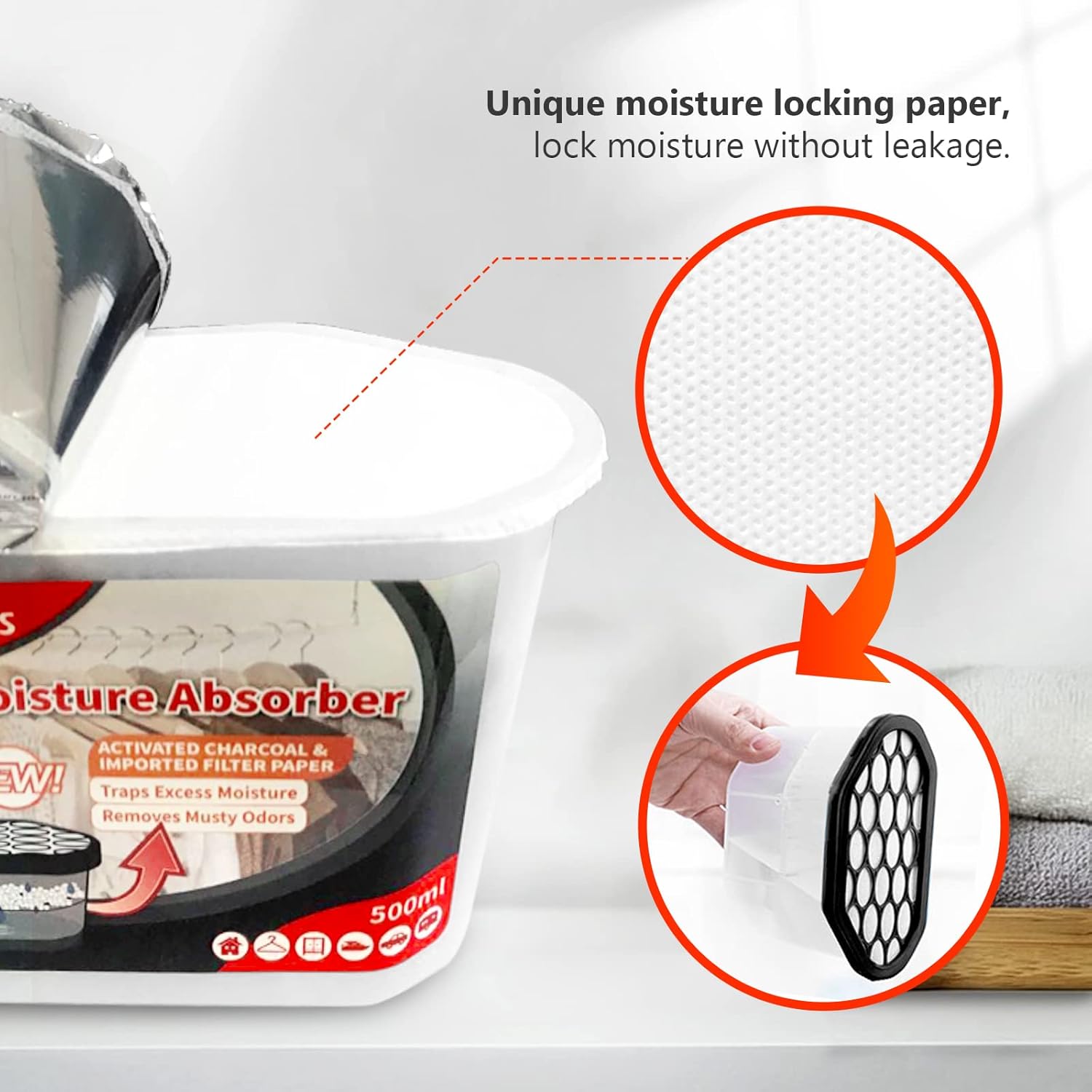 Vacplus Moisture Absorbers 6 Pack, 10.5 Oz Portable Humidity Absorber Boxes for Your Bathroom, Closet & Car, Dehumidifier with Activated Carbonfor, Black