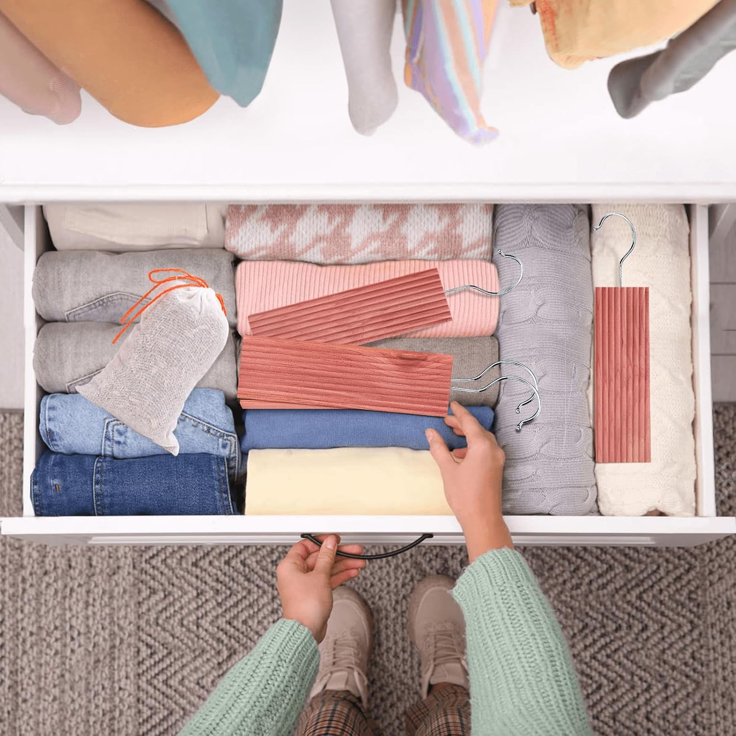 • VERSATILITY - Hanger hook assembled, allows you to hang it on closet rod easily, or place cedar hang-ups and sachets in drawers, storage bins, garment bags, that protects your clothes sweaters; And no staining in clothes