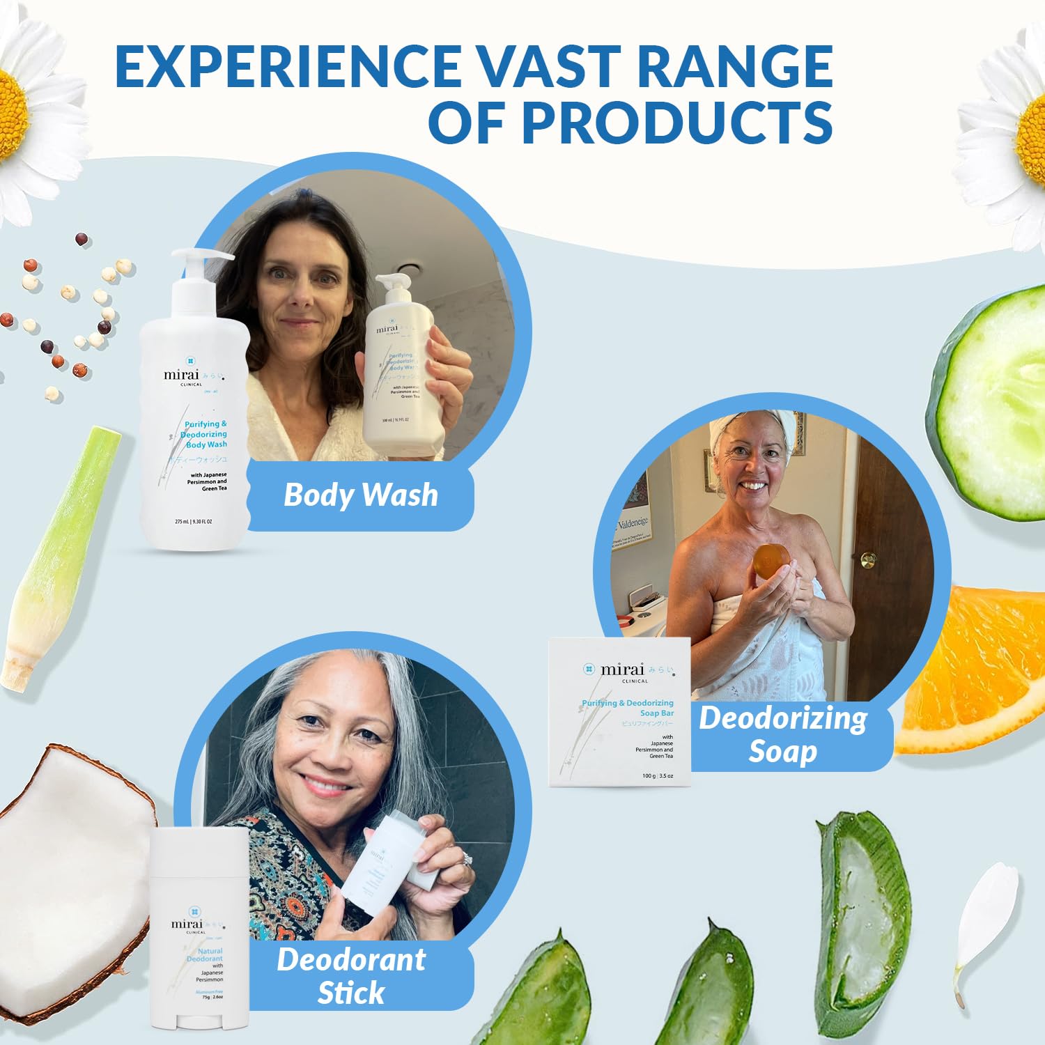• ANTI-ODOR SOAP: Mirai Clinical’s unisex deodorizing soap bar eliminates all kinds of body odors and keeps your skin squeaky clean and freshly hydrated all day long.