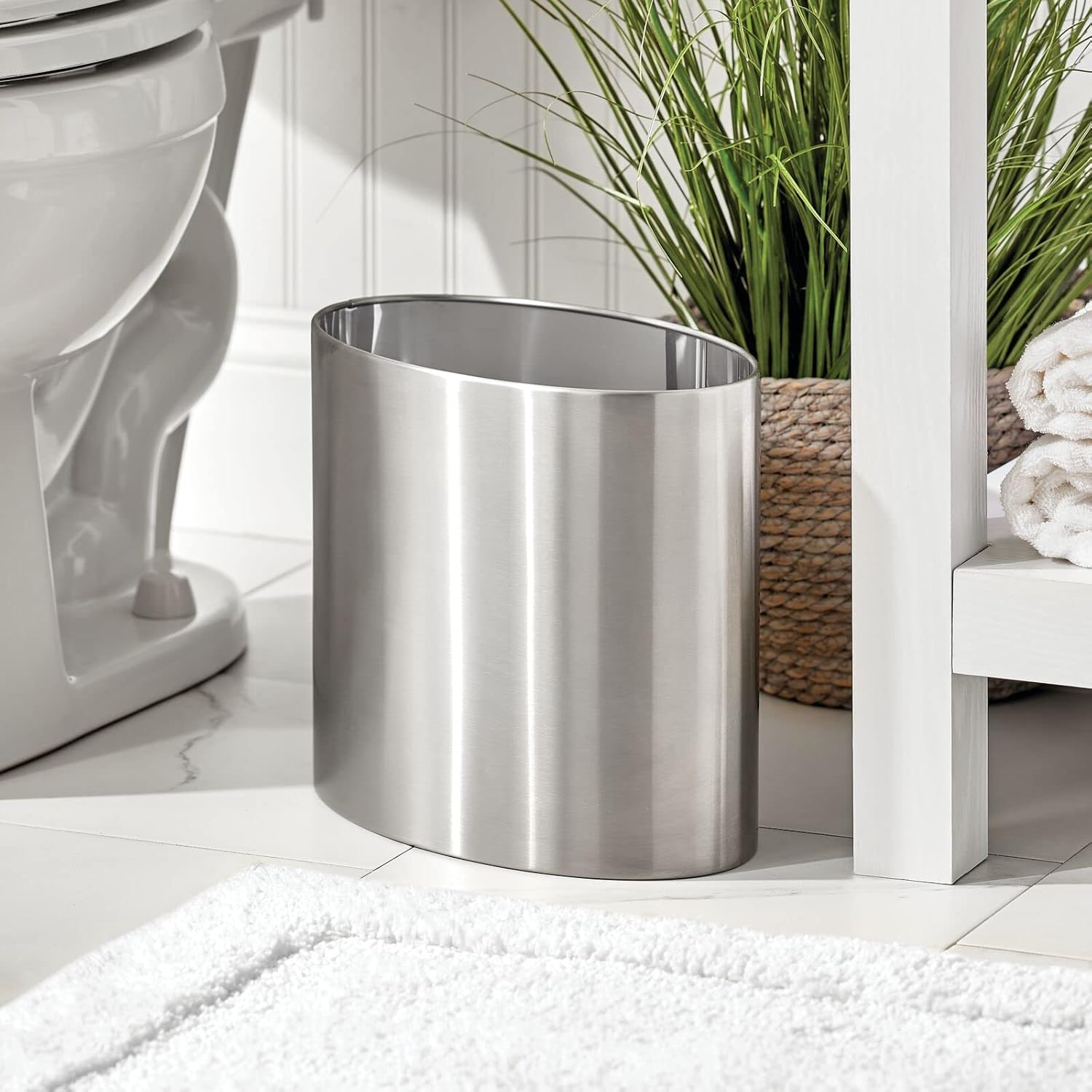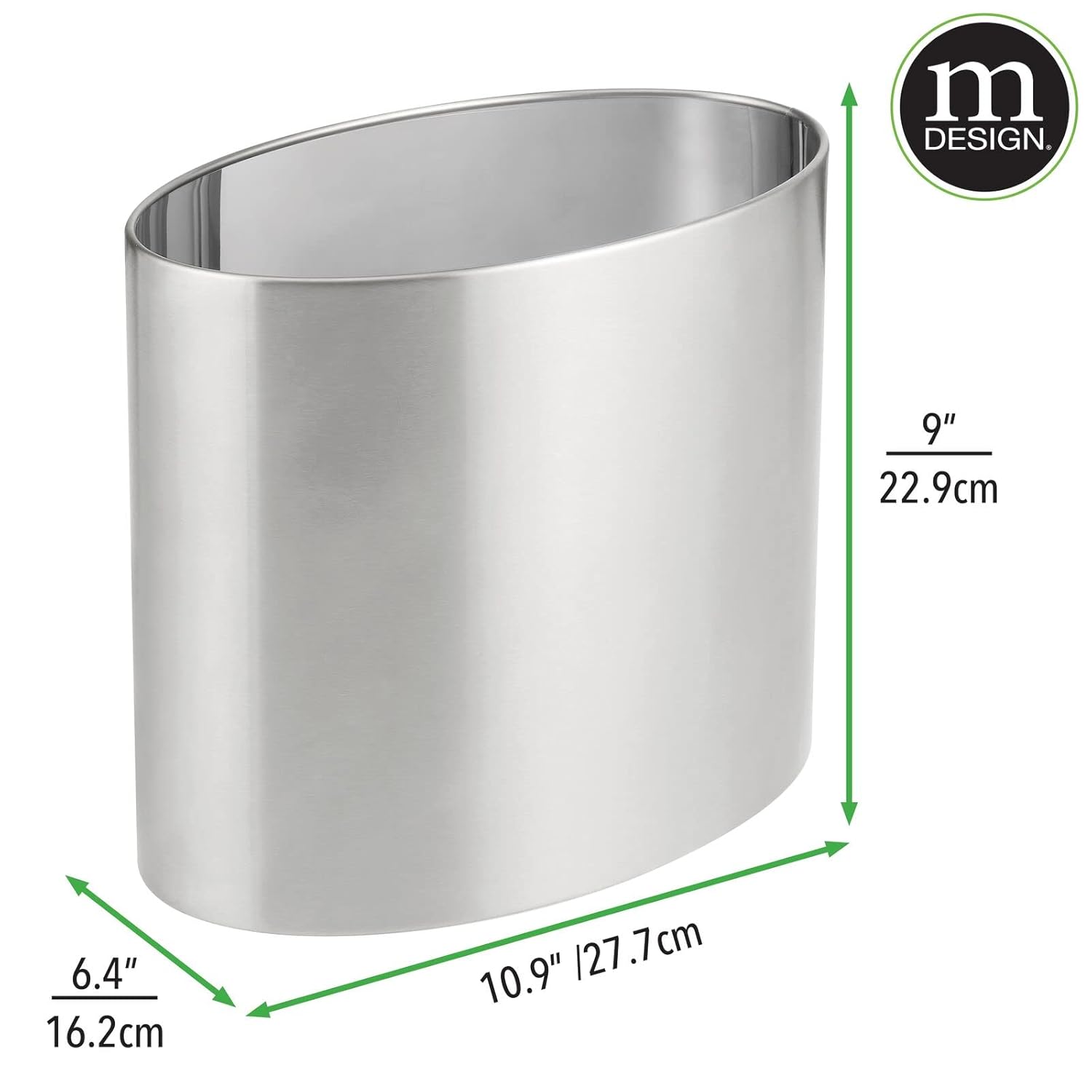 mDesign Stainless Steel Metal Oval Trash Can, 7.9 Liter/2.09 Gallon Wastebasket, Garbage Basket Bin for Bathroom, Bedroom, Kitchen, Office, Holds Waste and Recycle, Mirri Collection, Brushed/Chrome