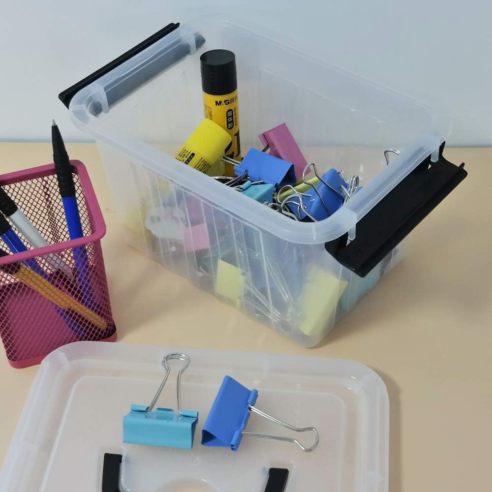 Bringer 3 Quart 6-Pack Clear Plastic Storage Boxes, Latch Box with Black Handle