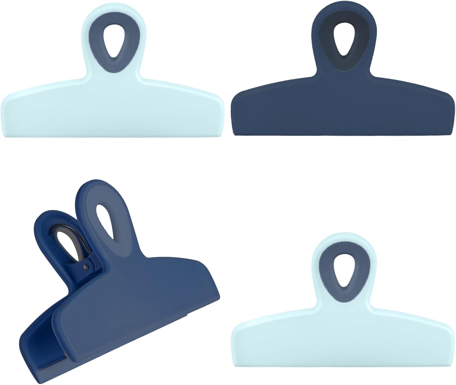COOK WITH COLOR Bag Clips - Heavy Duty Chip Clip and Refrigerator Magnet Clips for Food Storage with Air Tight Seal Grip, Blue Ombre, Pack of 4 Large Clips