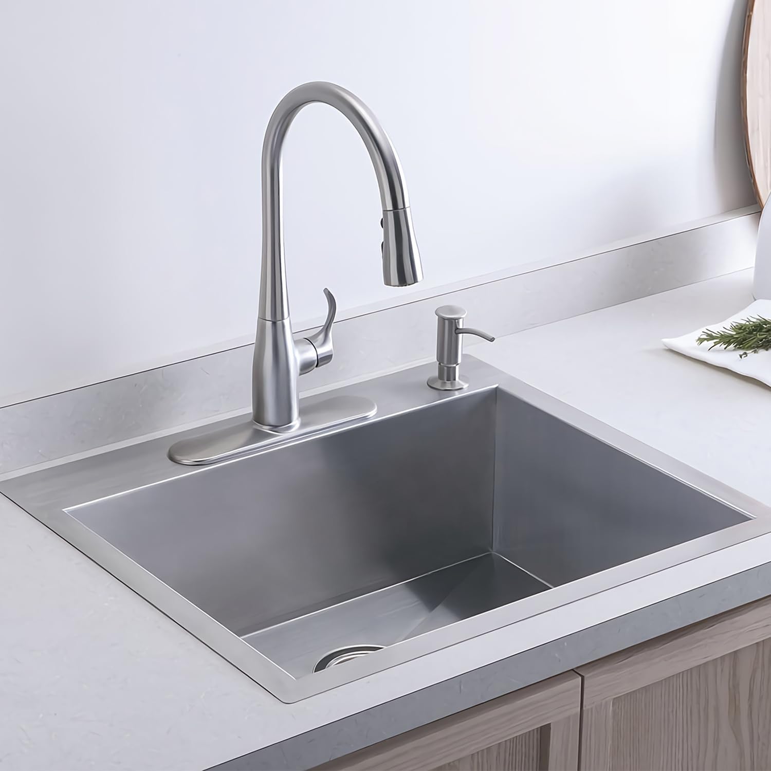 • 【Fast-Draining Kitchen Sink】In the bottom of small sink features an X-shaped water guide and 1° slope to rapidly channel water toward the drain, leaving your sink clean and dry after every use
