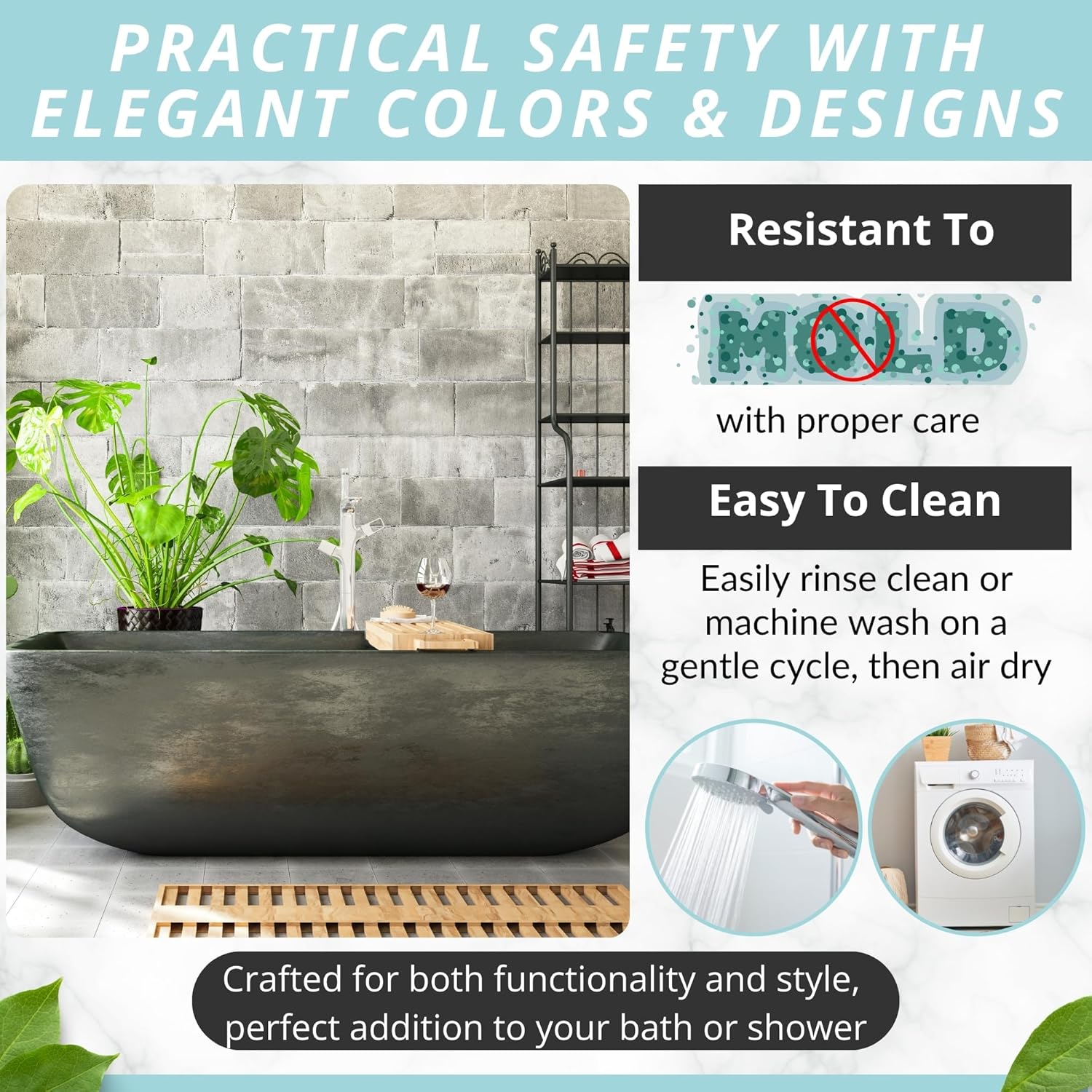 • Modern, Sturdy & Made To Last: Complement your stylish bath rugs décor with an eye-catching bath mat in many color variations. Place it in the washing machine, to keep it fresh, clean and hygienic for a long time!