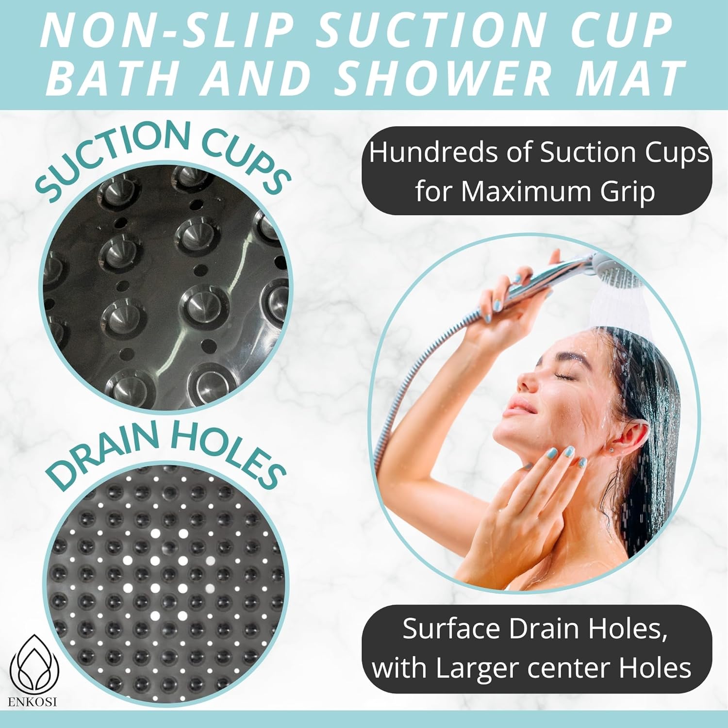 • Great For The Elderly, The Babies & Young Children: Nonslip & generously sized, the Enkosi bath mat ensures the safe bathing & showering of your baby, toddler, as well as your elderly parents or grandparents.