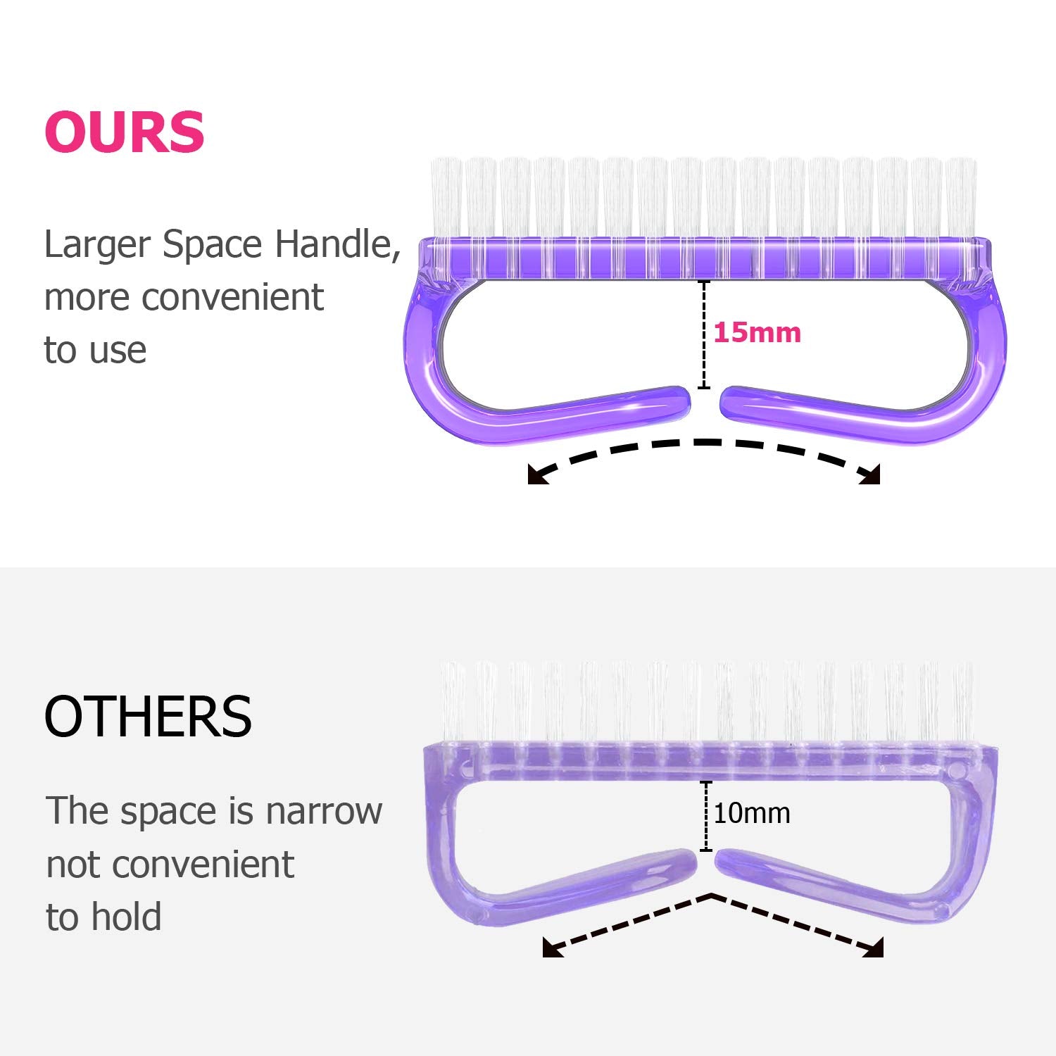 • 【High Quality Material】: These nail brushes' handles are made of sturdy plastic which are not easy to bent. The bristles are made of flexible plastic, not too hard and not too soft which won't scratch your skin. Sturdy for long-term to use.