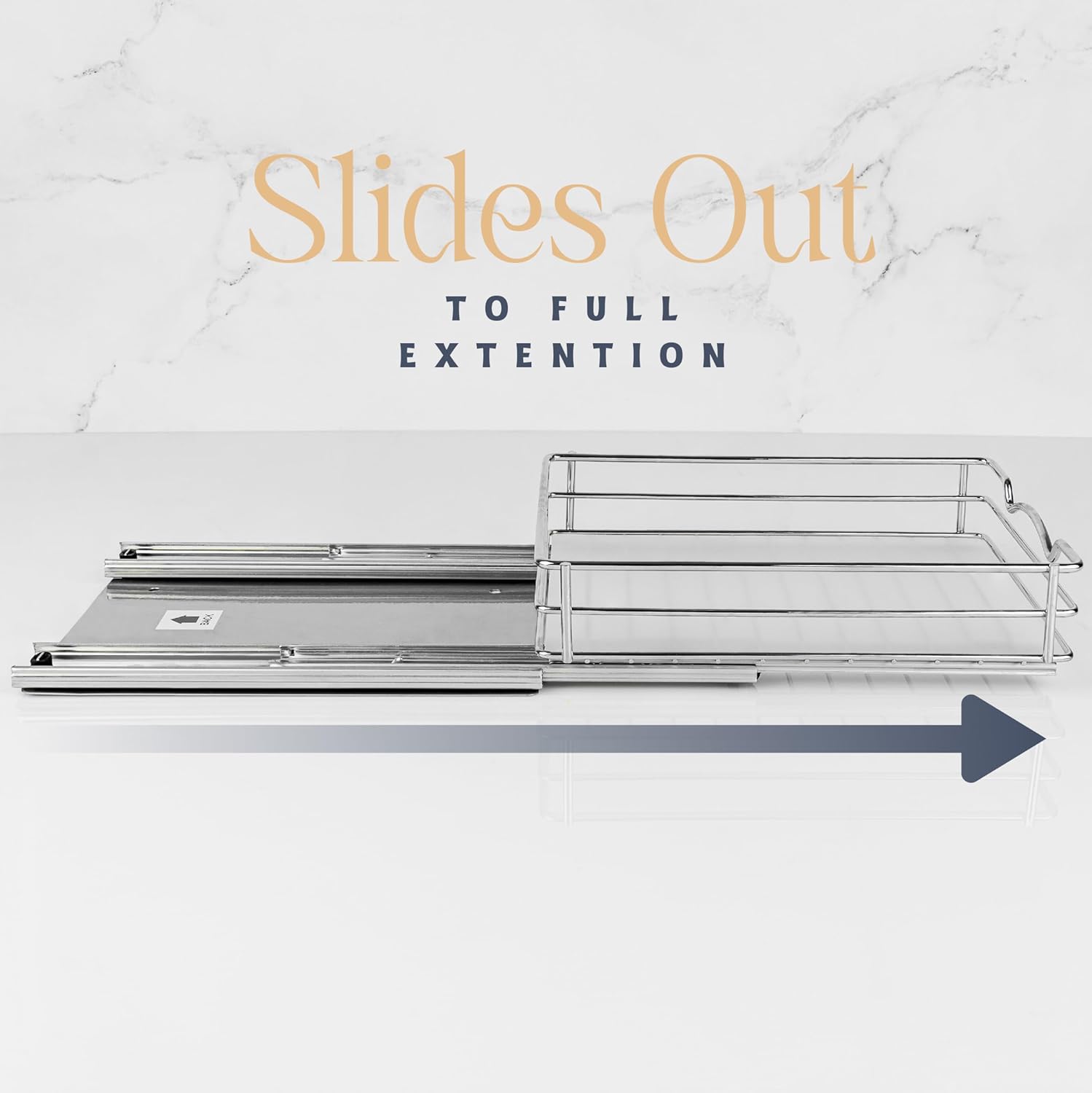 Pull Out Cabinet Organizer for Spices, Cans - Heavy Duty with Lifetime Limited Warranty- Pull Out Spice Rack- Cabinet Pull Out Shelf for Cans,Dishes, Etc, 8-3/8"W x 10-3/8"D x 2-1/8H, Chrome