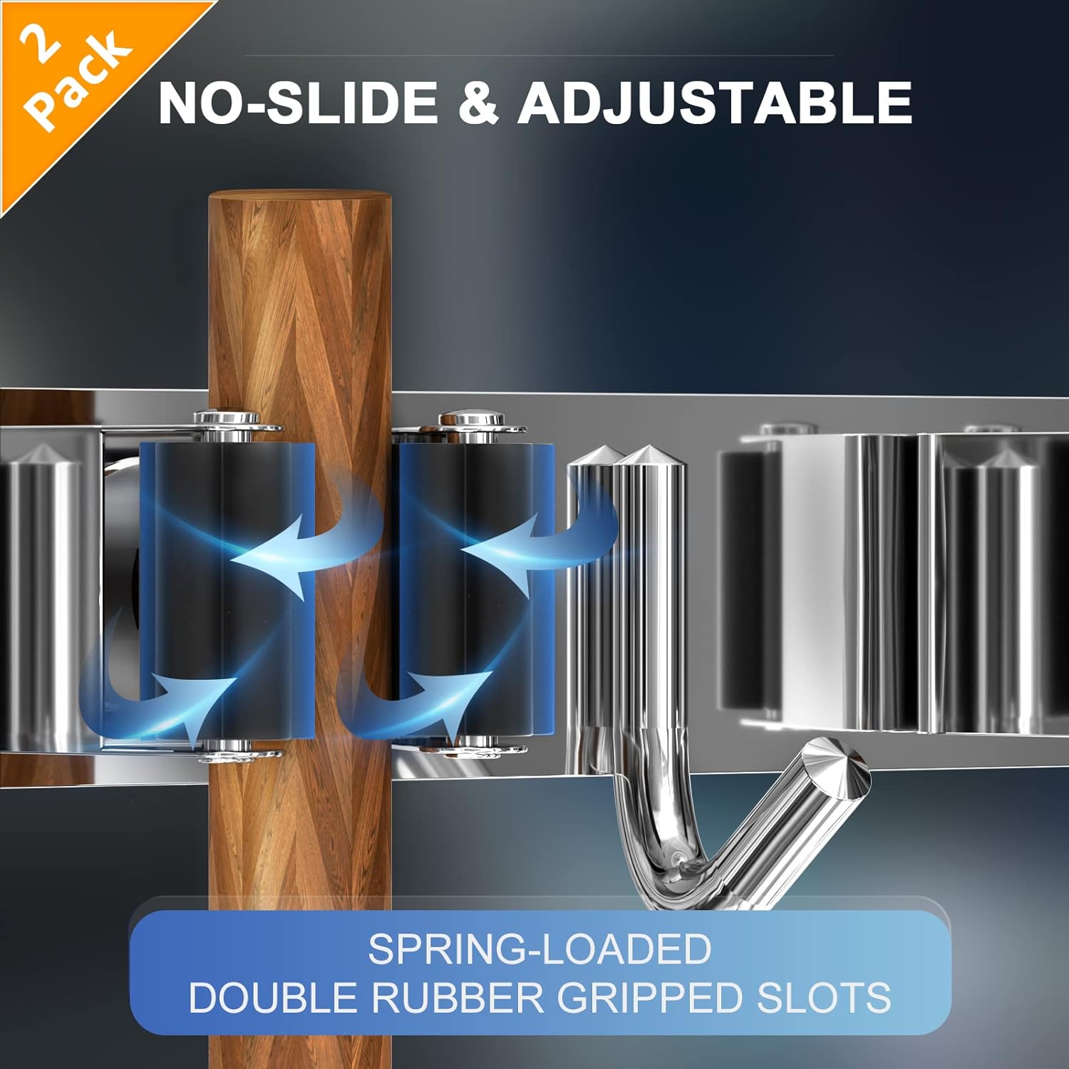 • 🏡【NON-SLIDE DESIGN】Each rack of the broom and mop holder wall mounted features an adjustable triangular design. The spring-loaded, double rubber gripped slots can keep a stronger hold on your items with diameter of 0.7 inch-1.3 inch. Whether wet mops or baseball bats, nothing slips.