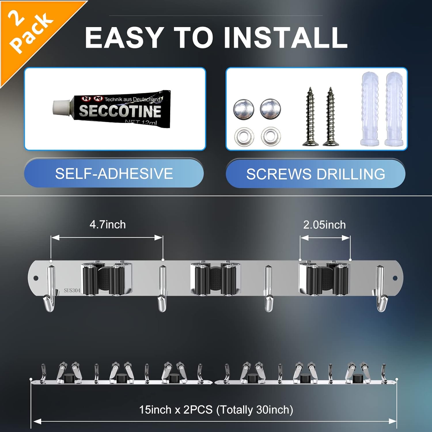 • 🏡【EASY TO INSTALL & USE】There are two ways to install the broom hanger wall mount, screws drilling and self-adhesive, which is suitable for different installation surfaces. Please follow the clear instructions step by step, even the clumsiest of us can install easily in just minutes!