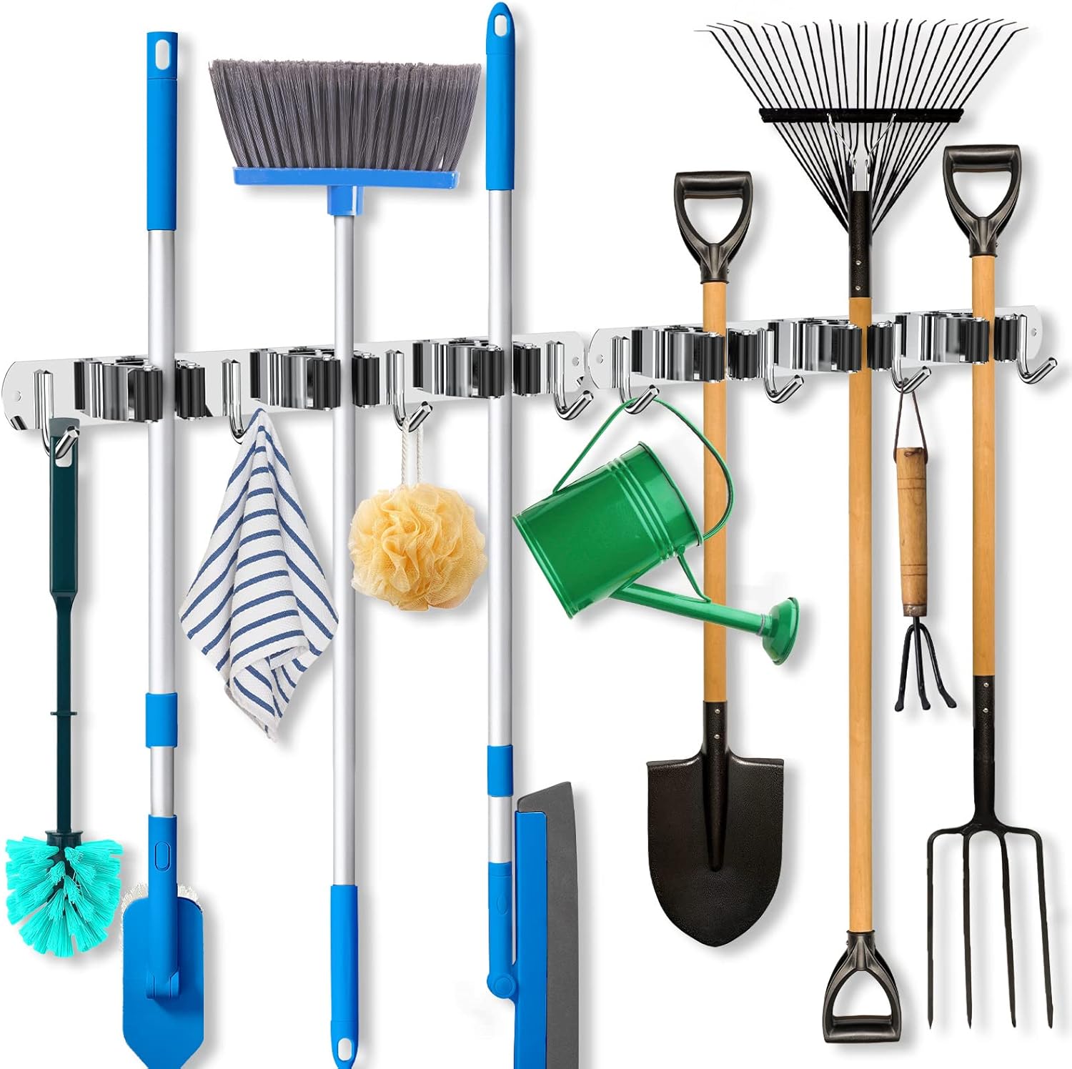 • 🏡【ORGANIZING & SAVING SPACE】Our mop and broom holder wall mount can keep messes organized in just 3 minutes. You can easily mount your broom, mops, rakes, brushes and any other tools, saving space for your kitchen, garage, garden, laundry, closets, bathroom, office, commercial, etc..