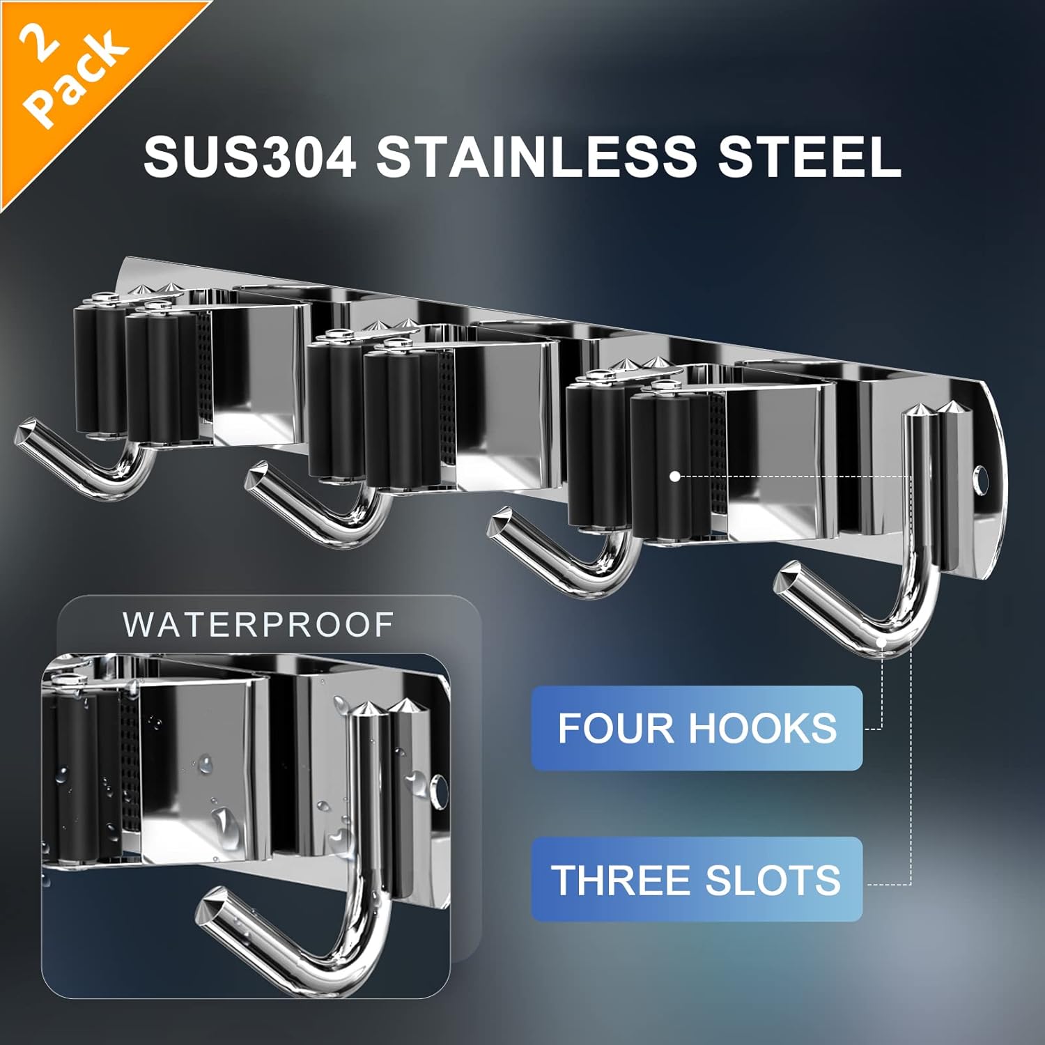 • 🏡【STURDY BROOM HOLDER】Each broom holder wall mount has 3 racks 4 hooks. Made of sturdy 304 stainless steel, the broom holder is corrosion-resistant, rustproof and waterproof. Compared with the plastic broom rack, it is more stronger and has a longer service life.