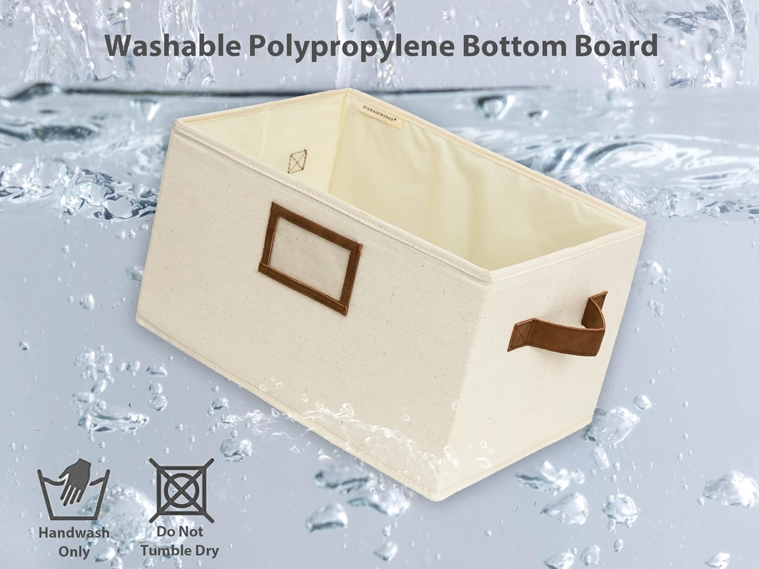 • The natural canvas fabric and the inserted heavy-duty boards of the storage bins allow them to support a weight of up to 30 pounds.