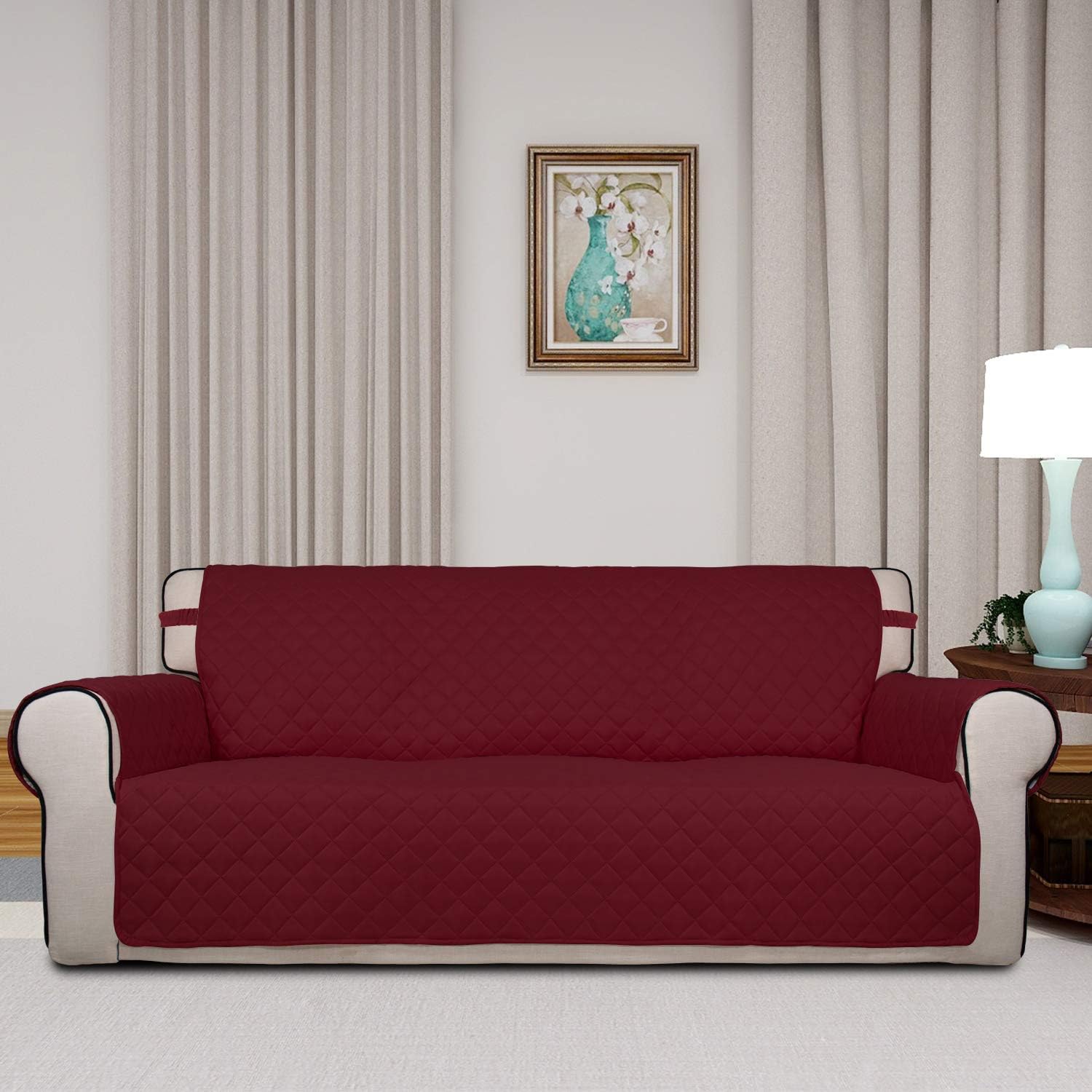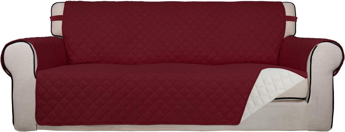PureFit Reversible Quilted Sofa Cover, Water Resistant Slipcover Furniture Protector, Washable Couch Cover with Non Slip and Elastic Straps for Kids, Pets (Oversized Sofa, Red/Ivory)