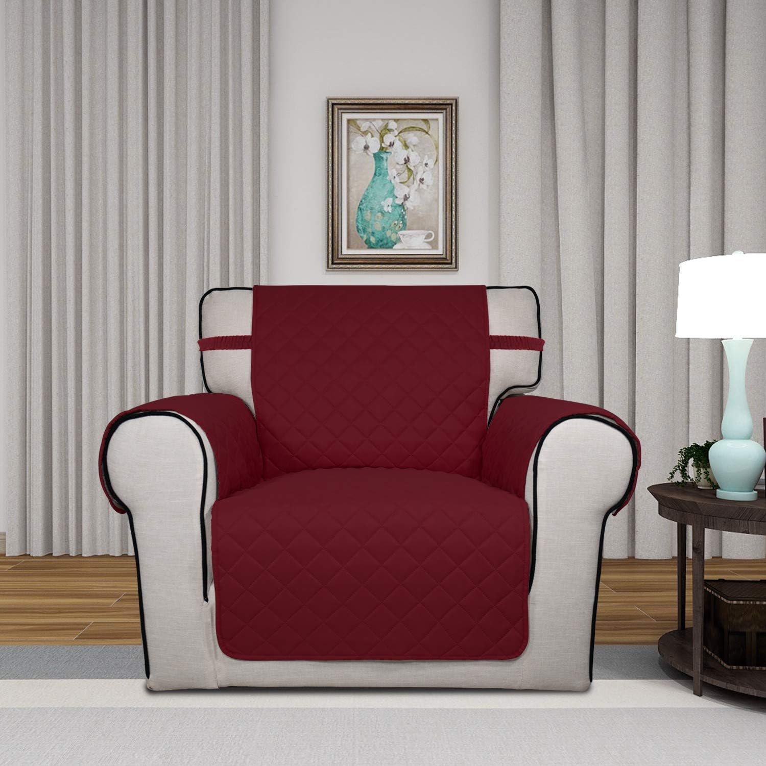 PureFit Reversible Quilted Sofa Cover, Water Resistant Slipcover Furniture Protector, Washable Couch Cover with Non Slip and Elastic Straps for Kids, Pets (Chair, Red/Ivory)