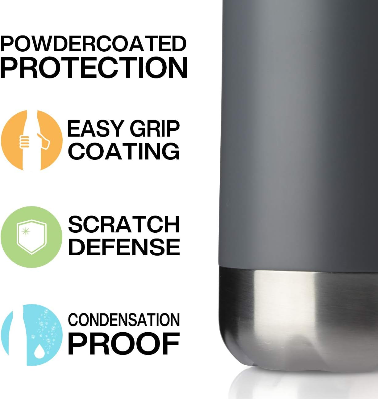 • DURABLE QUALITY:This sleek and rugged sports water bottle is made from high quality food grade 18/8 stainless steel that will not break. Scratch resistant and easy to clean. Stylish solid color design that looks cool