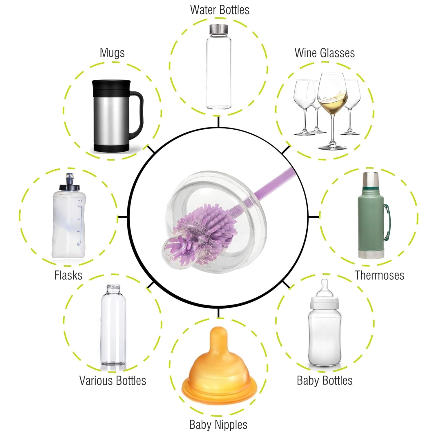 • Compatible With Most Bottles – A-Brush Bottle Cleaner Brushes are handy for cleaning water bottles, beer bottles, wine bottles, glasses, and champagne flutes. Upgrade your kitchenware with high-quality silicone cleaning brushes compatible with Hydro flask, Contigo, Nalgene, Yeti, Thermos, Lifestraw Stanley Vacuum, Camelbak, Embrava, Brita, Cactaki, Letsfit, Sgodde, among others. Bring home bottle brushes for cleaning performance that never disappoints. Keep your family protected and order today