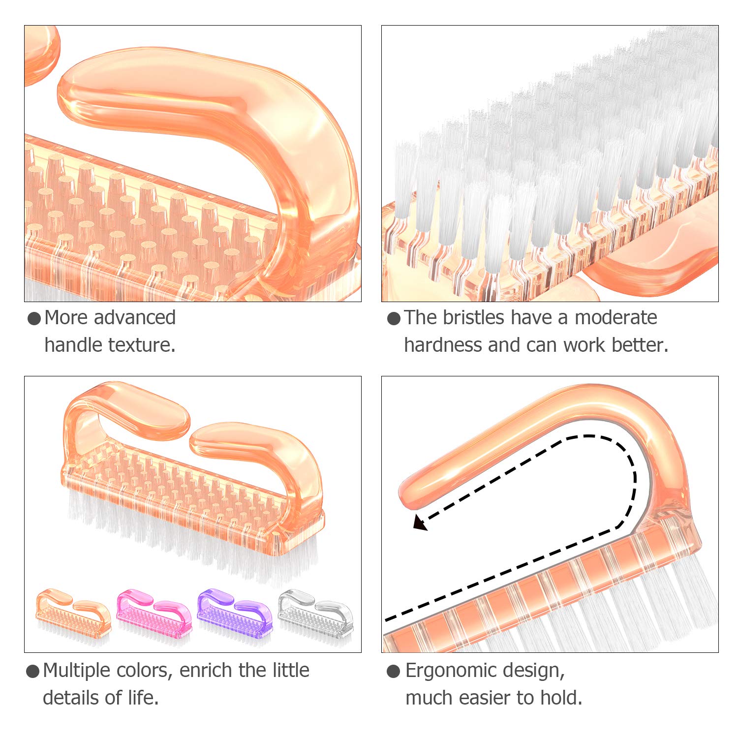 • 【High Quality Material】: These nail brushes' handles are made of sturdy plastic which are not easy to bent. The bristles are made of flexible plastic, not too hard and not too soft which won't scratch your skin. Sturdy for long-term to use.