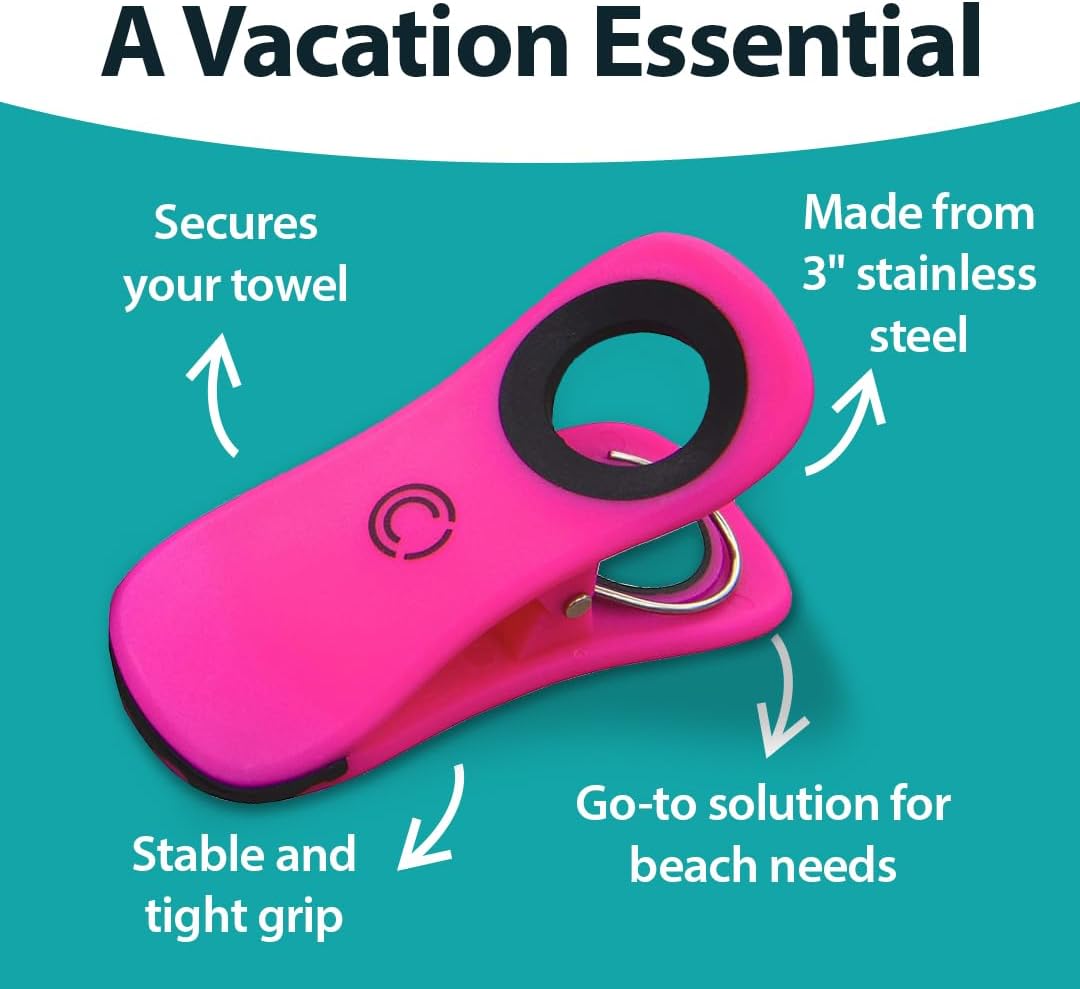 • MORE THAN JUST A TOWEL CLIP. Maximize utility with these versatile large clips. Use them on the boat to secure gear, on the balcony to dry swimsuits and clothes, or in the pantry as heavy-duty chip clips. From pool days to camping trips, find endless uses for a truly multi-purpose tool.