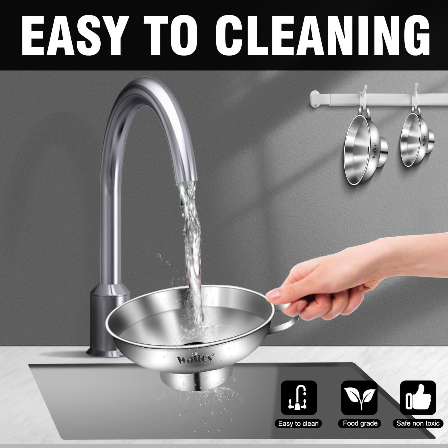 • PREMIUM QUALITY KITCHEN HELPER - Compared to the traditional plastic funnel set,Made of food-grade sturdy stainless steel,PBA free, also resists breaking, bending, scratching