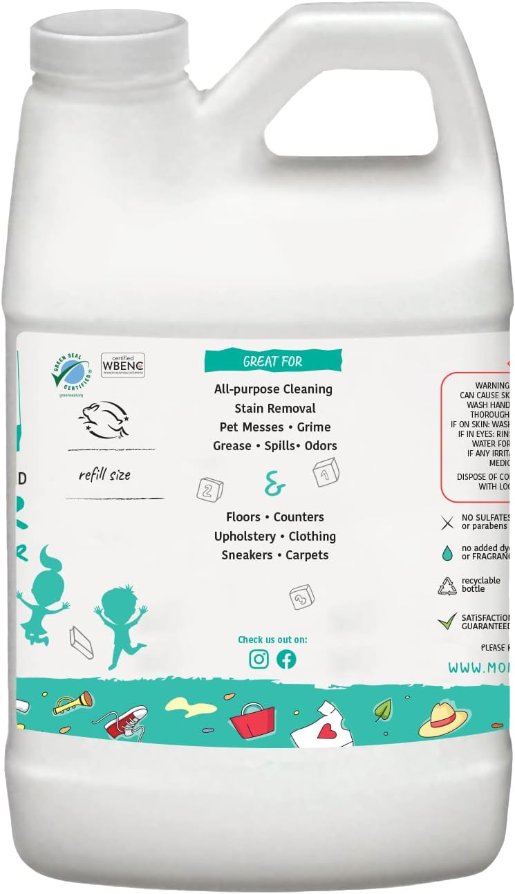 • EVERYTHING HOUSEHOLD: MomRemedy works on all surfaces the home such as granite counters, marble, floors, stainless steel, clothing, upholstery, carpets and more!