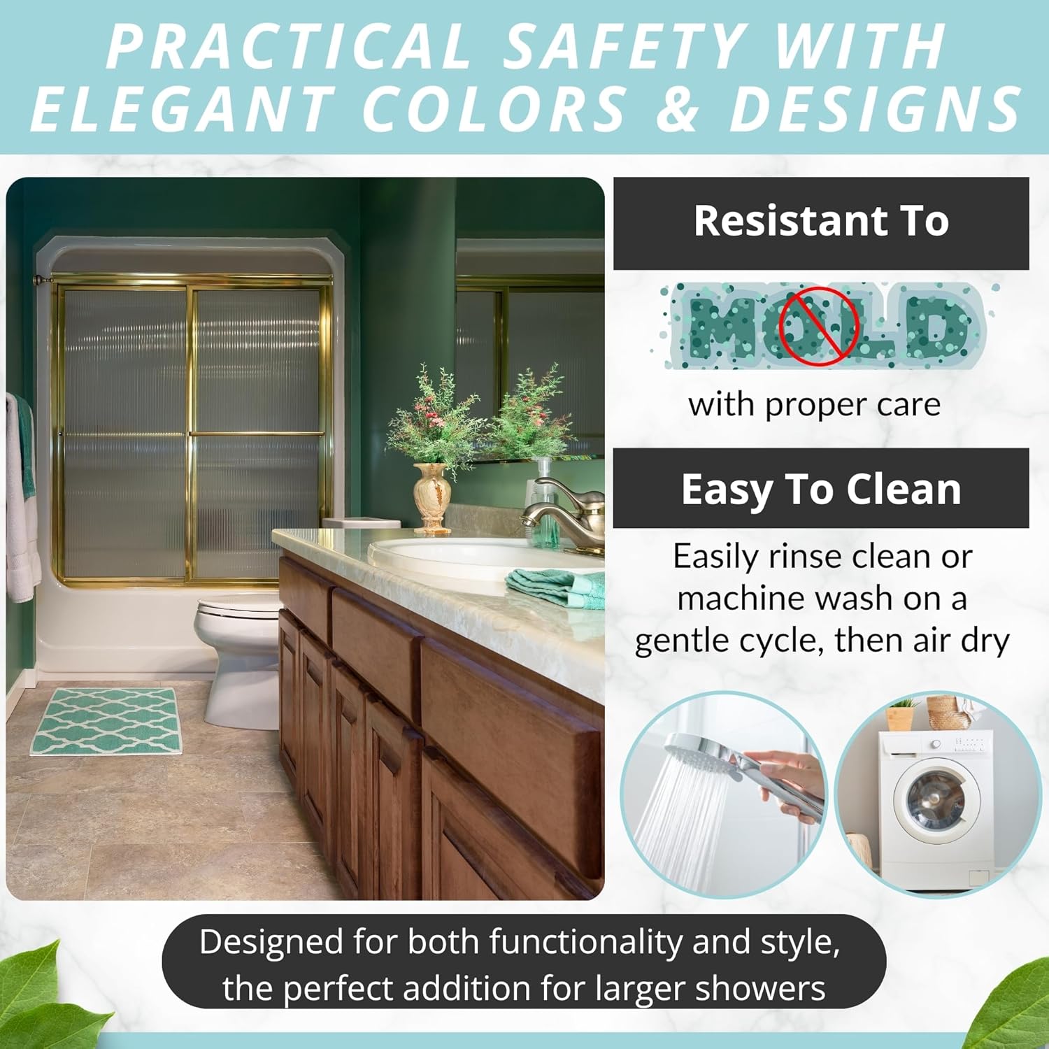 • Modern, Sturdy & Made To Last: Complement your stylish bath rugs décor with an eye-catching bath mat in many color variations. Place it in the washing machine, to keep it fresh, clean and hygienic for a long time!
