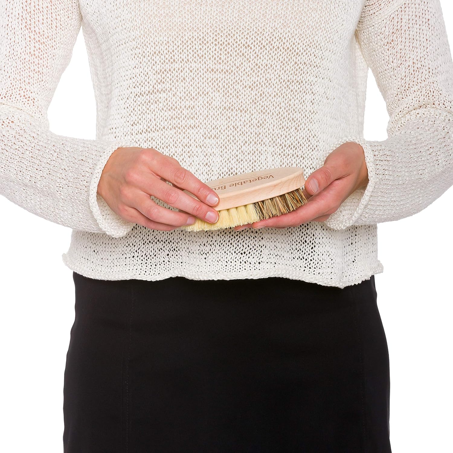 • Efficient Vegetable Cleaning: This wooden vegetable brush is ideal for gently and thoroughly cleaning almost all kinds of vegetables and root crops without bruising, scraping, or damaging foods; efficiently scrubs dirt from potatoes, carrots, radishes, cucumbers, zucchinis, tomatoes, and more; Brush made in Germany
