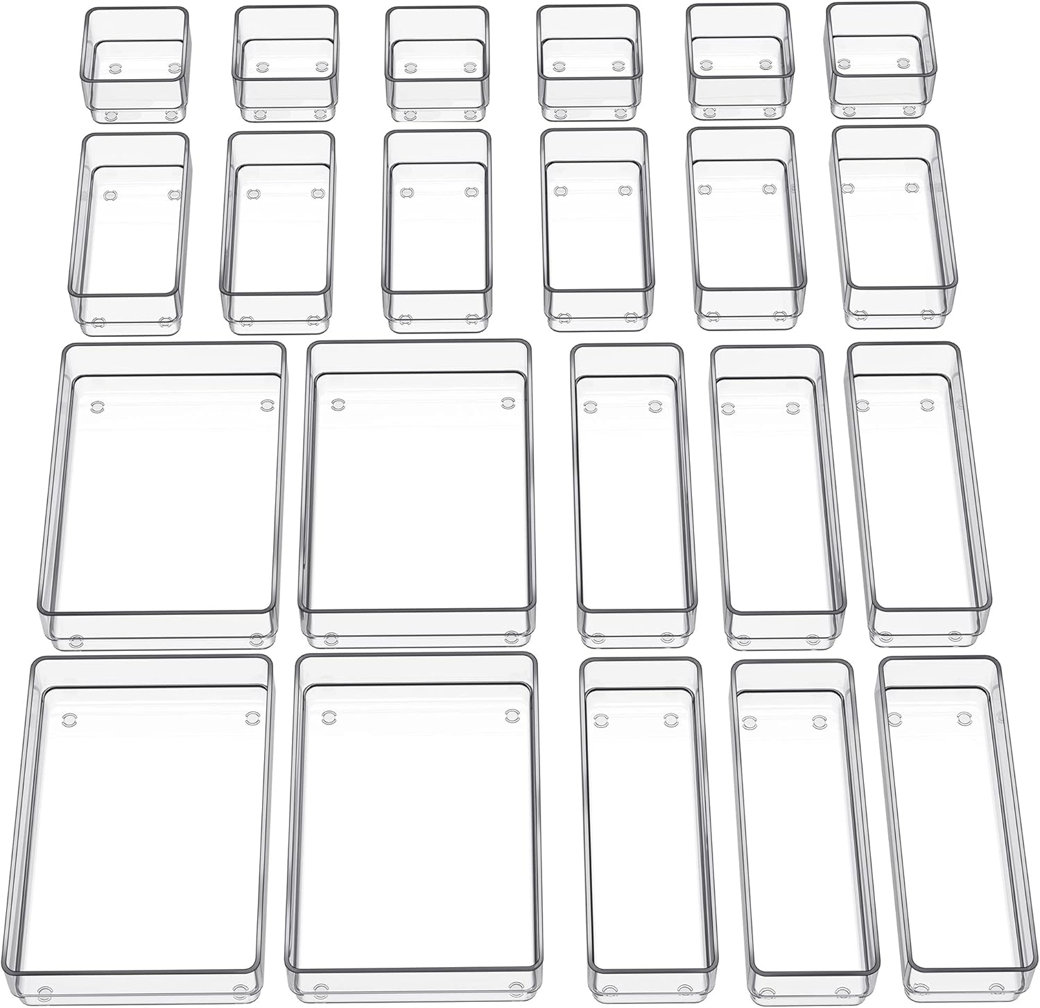 • 4 Different Sizes: One set includes 22 pcs storage bins in 4 different sizes offer you customize combinations to store stuff and organize drawer for your specific needs. Size: 8.9 x 5.9 x 1.9 inches (4 packs), 8.9 x 3.0 x 1.9 inches(6 packs), 5.9 x 3.0 x 1.9 inches(6 packs), 3.0 x 3.0 x 1.9 inches(6 packs).