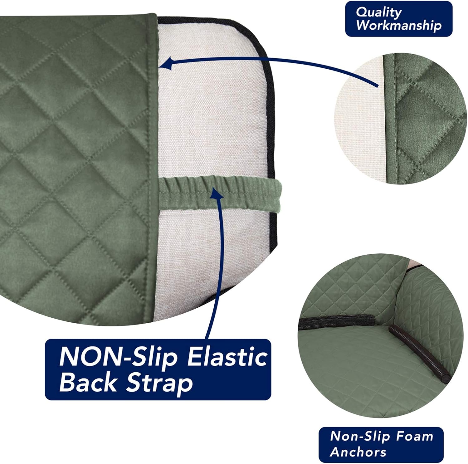 • The reversible sofa cover that stays in place: Our sofa couch cover for dogs and pets features a reversible design (dual color) . Our non-slip sofa furniture slip covers also feature non slip foam anchors and Feature elastic straps to ensure they will keep in place.