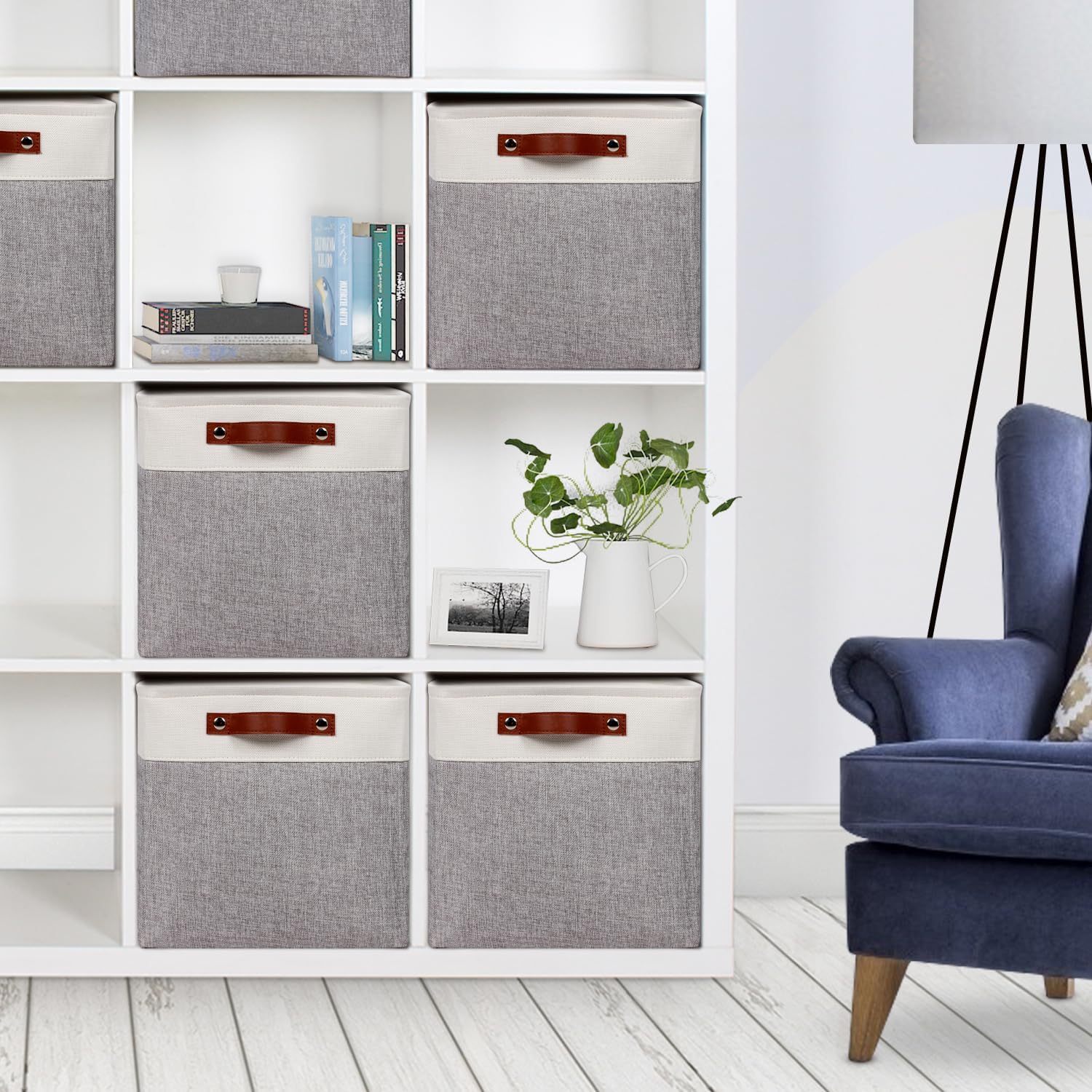 • 【Storage Baskets for Shelves】Upgraded version storage organizer bins specially add the hard cardboard on bottom to avoid the basket deform when you use.Retain the bottom a flat shape,More sturdy and durable.Together with the leather handles on both sides, it is easy to pull in or out from shelves and closet.