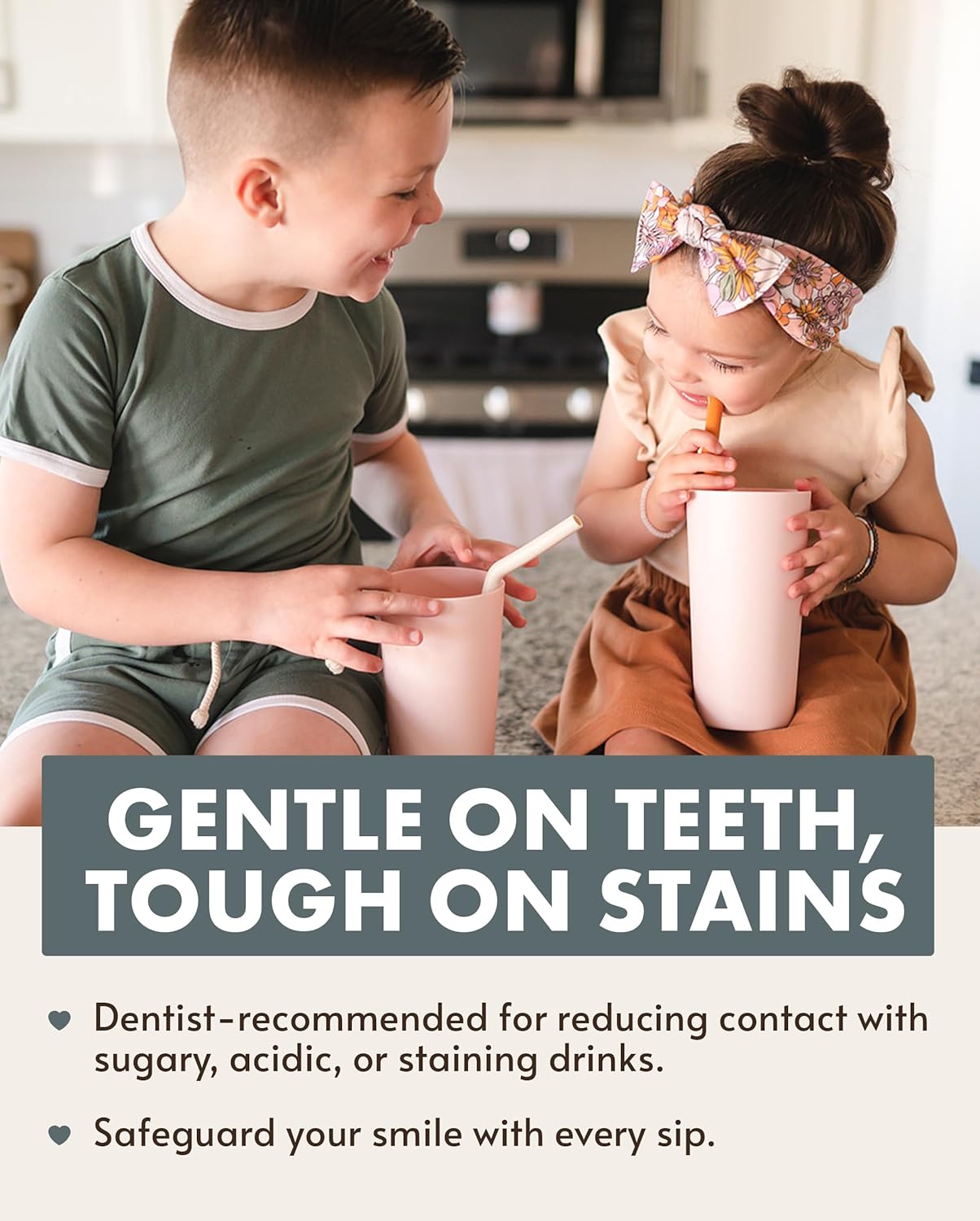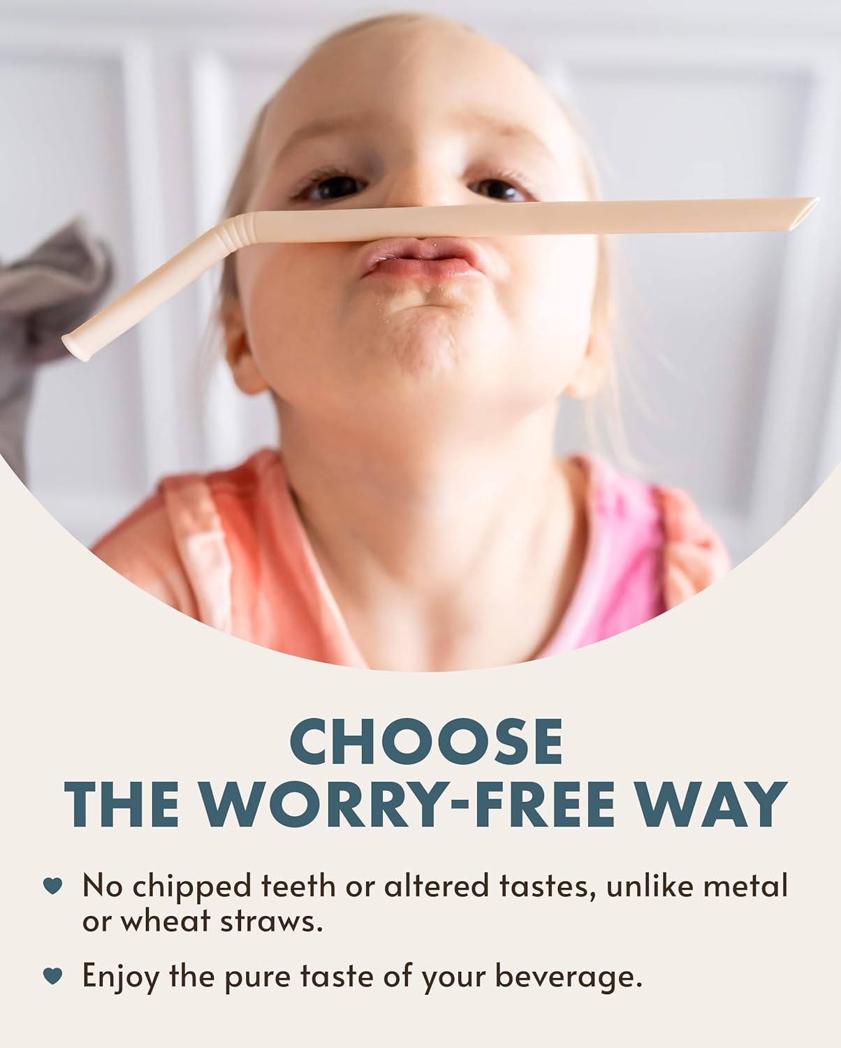 • ✨ Last For Years To Come - Our silicone smoothie straws are made with platinum-cured silicone, which is food-safe and is much softer than regular silicone. Plus, it does not harden over time so your kids can keep using them.