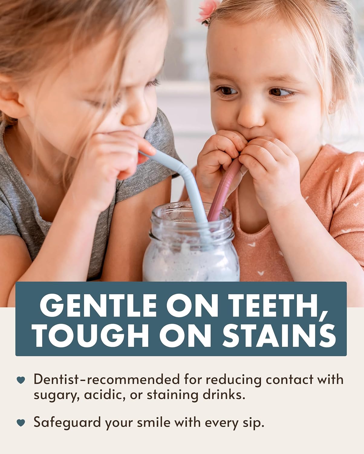• ✨ Last For Years To Come - Our silicone smoothie straws are made with platinum-cured silicone, which is food-safe and is much softer than regular silicone. Plus, it does not harden over time so your kids can keep using them.