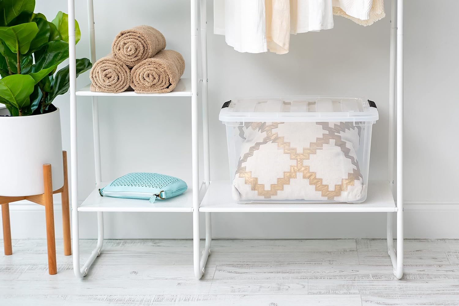 • STACKABLE STORAGE: Maximize space in your home, office, or playroom. The securely locking lid keeps items safe and allows bins to be stacked on top of each other.
