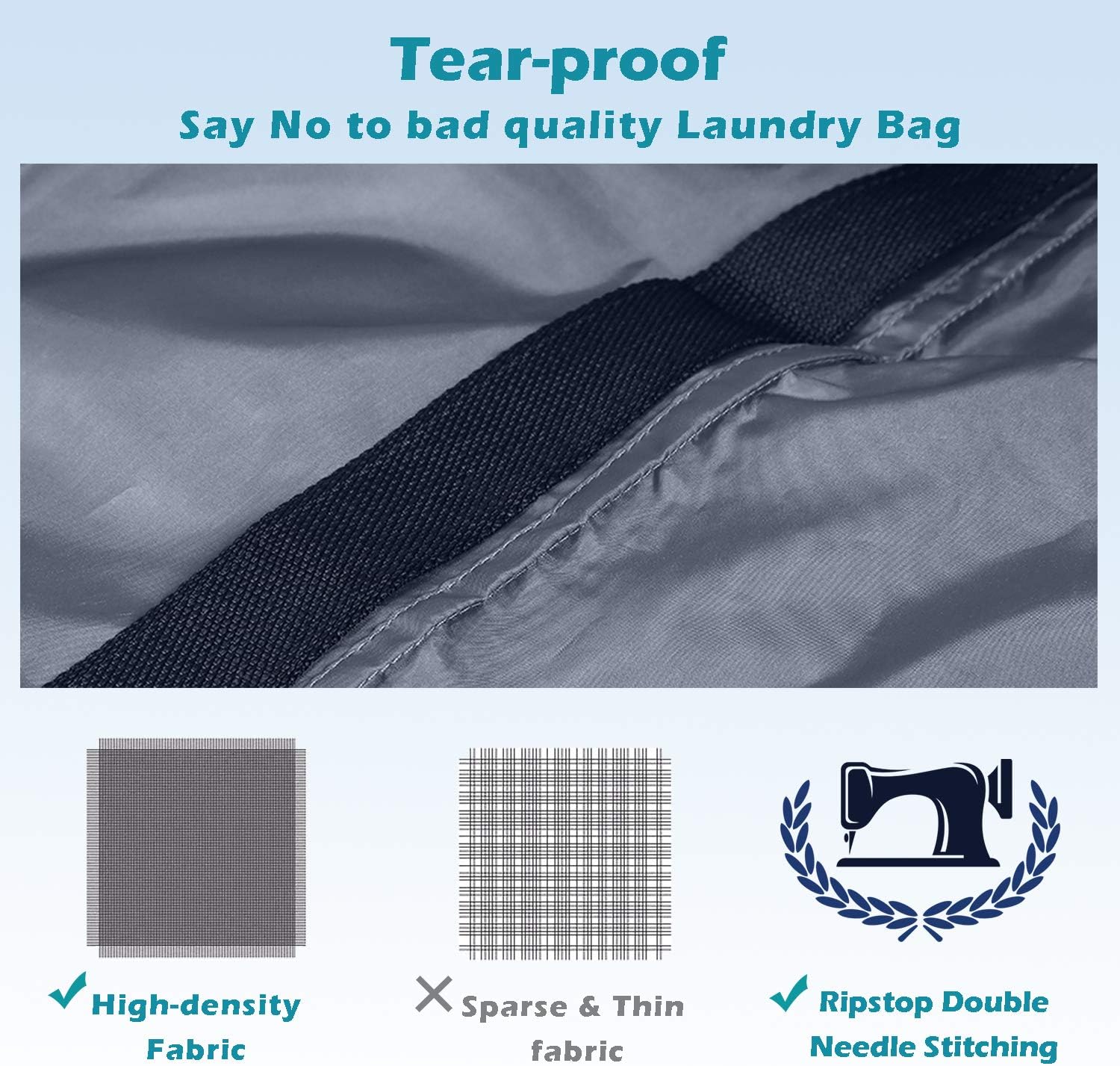 • Stand the Test of Time:Unlike most brands on the market, each of our extra large heavy duty laundry bags is made of tear-resistant and high-density polyester nylon material, with extra-tough double-seam construction and multiple stitching to ensure the travel laundry bags will not rip easily and hold up well in the washing machine.