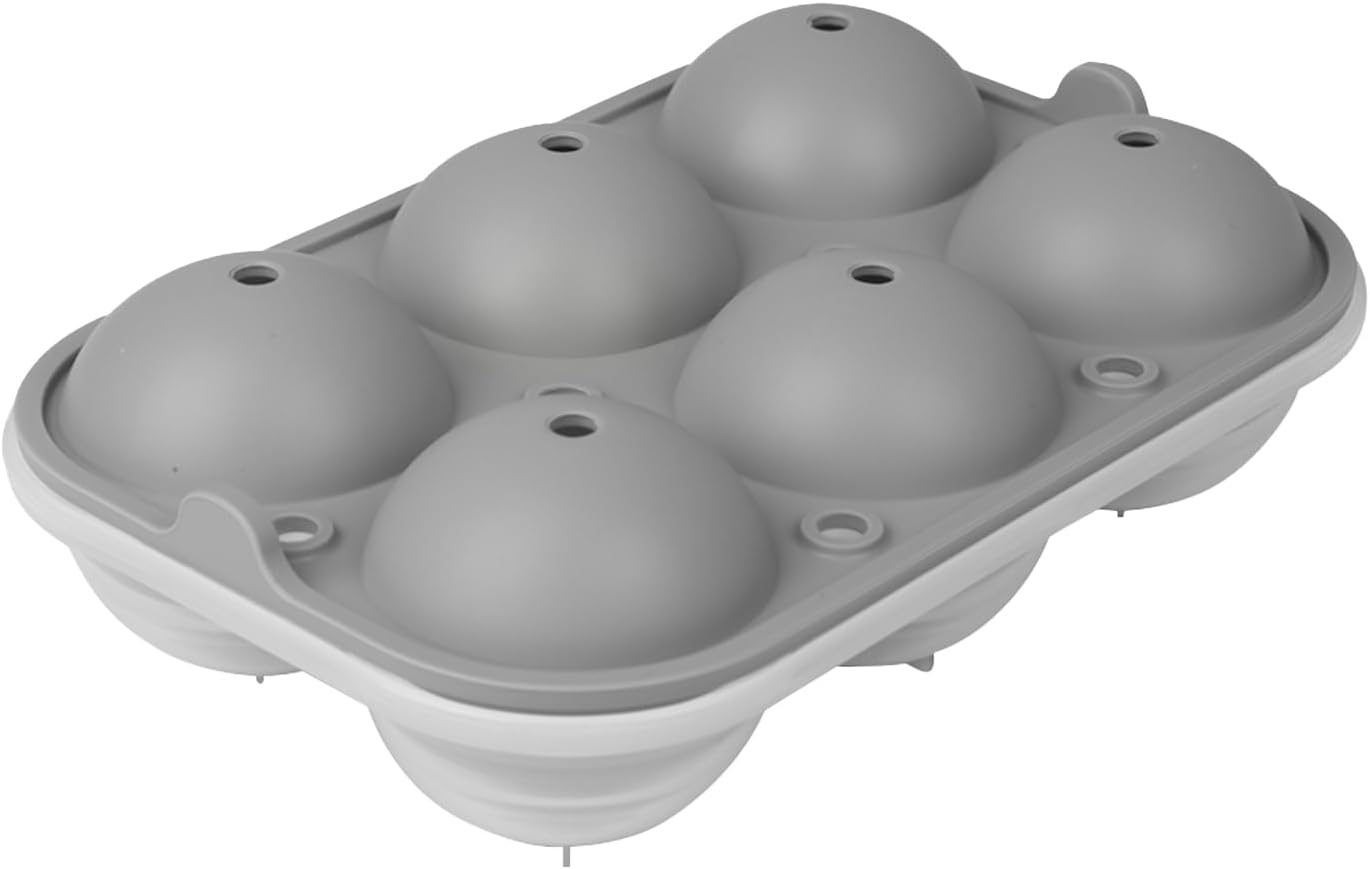• [MAKE 2.5” LARGE ICE BALLS]: The diameter of each cavity is 2.5inch, the size of the entire tray is 8.5*6*2.5inch. Ice tray is great to make 6 large ice spheres at one time. Perfect sized ice balls are really nice touch for cocktails or other beverages. They are fantastic round ice cube trays!