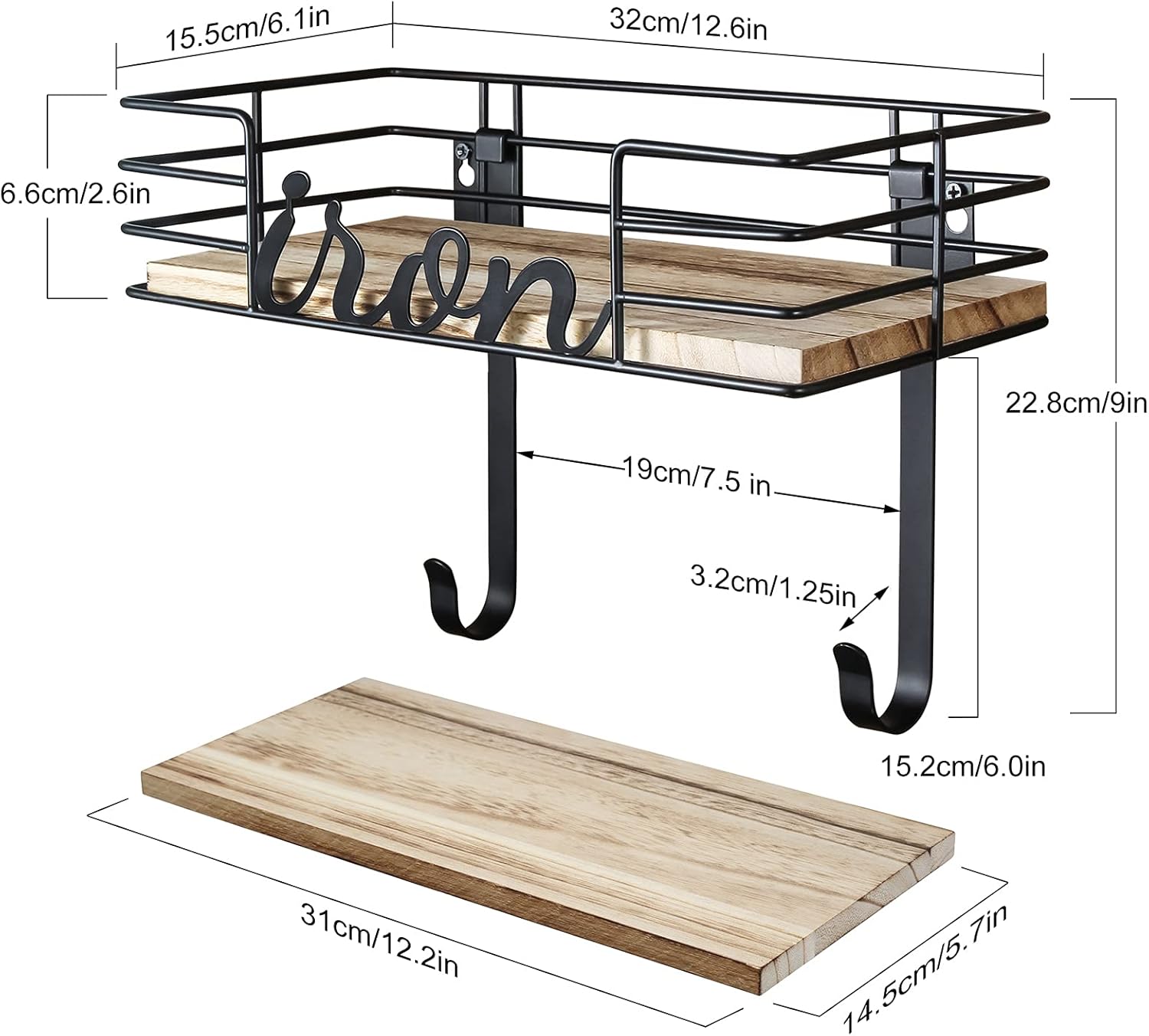 • STURDY AND STYLISH: TJ.MOREE ironing board hanger includes a natural wooden element in its functional basket. While ensuring stored items are secure, it creates a rustic yet modern style.
