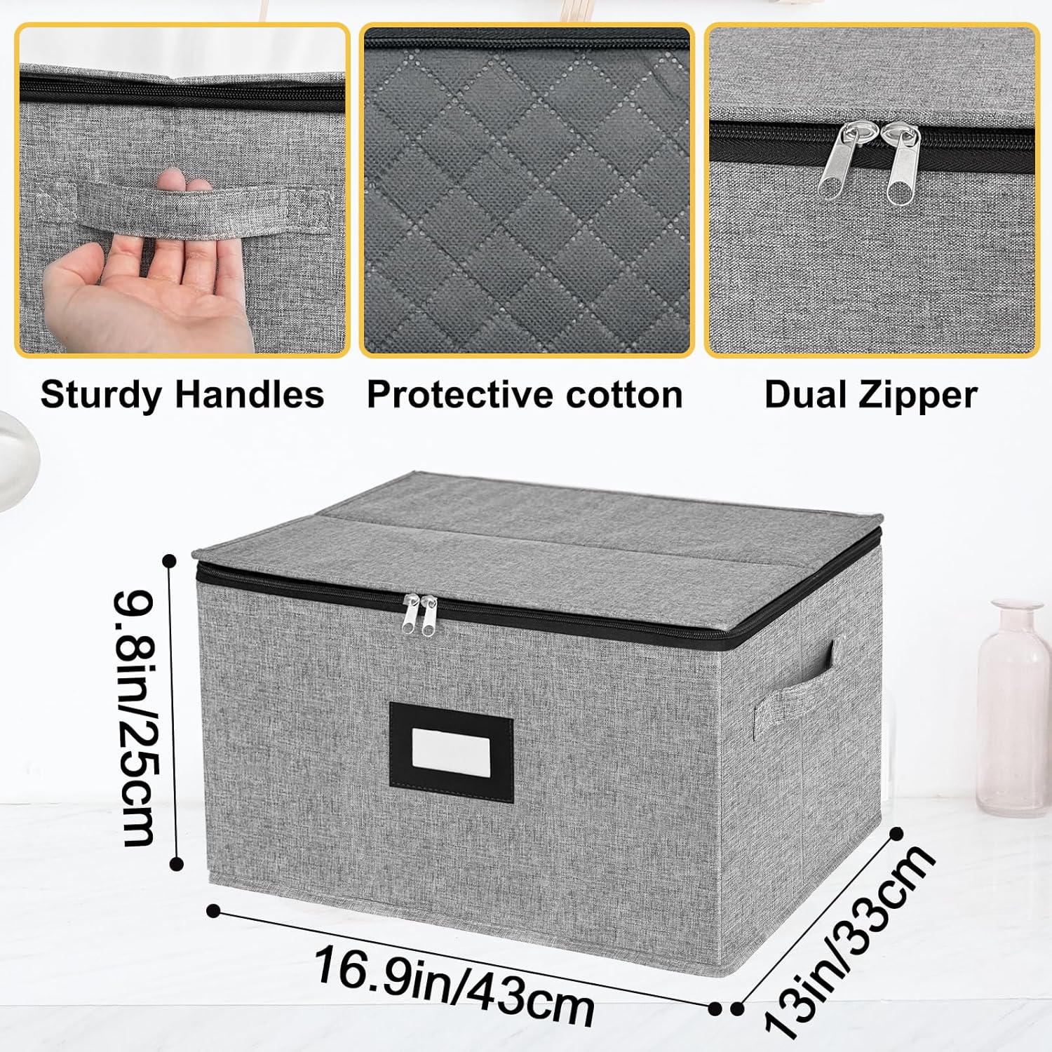 • 🍷 Double top-grade stong zipper - Dinnerware storage organizers equipped with #5 stainless steel zippers which are hard to be broken,top-grade,fasion design,two-way zippers allow it to easily slide along the colsure when in use.