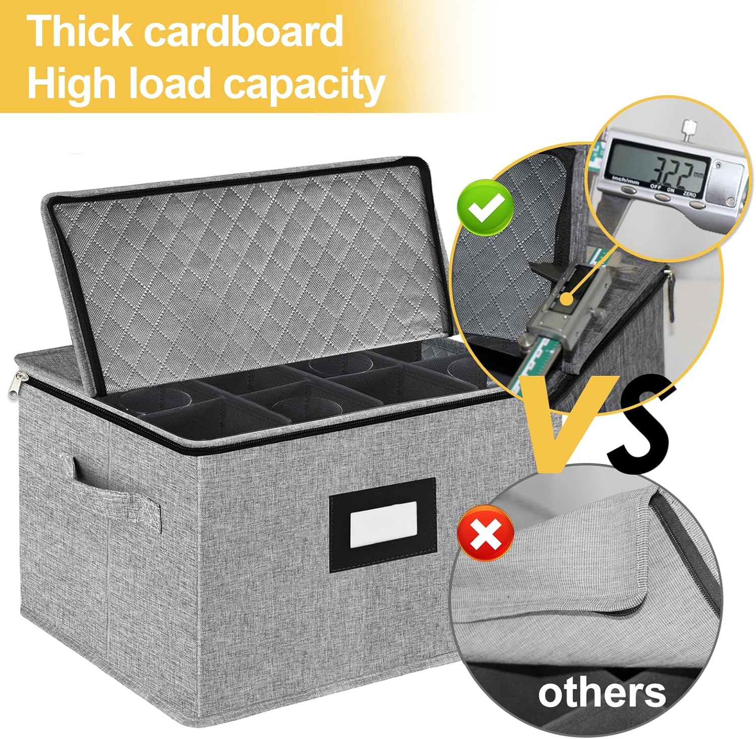 • 🍷 Premium durable material - Stackable wine glasses storage box is made of premium TC fabric and sturdy thick cardboard,the lid made with thick cardboard inside,the side pieces provide additional protection,so it's more sturdy than others.