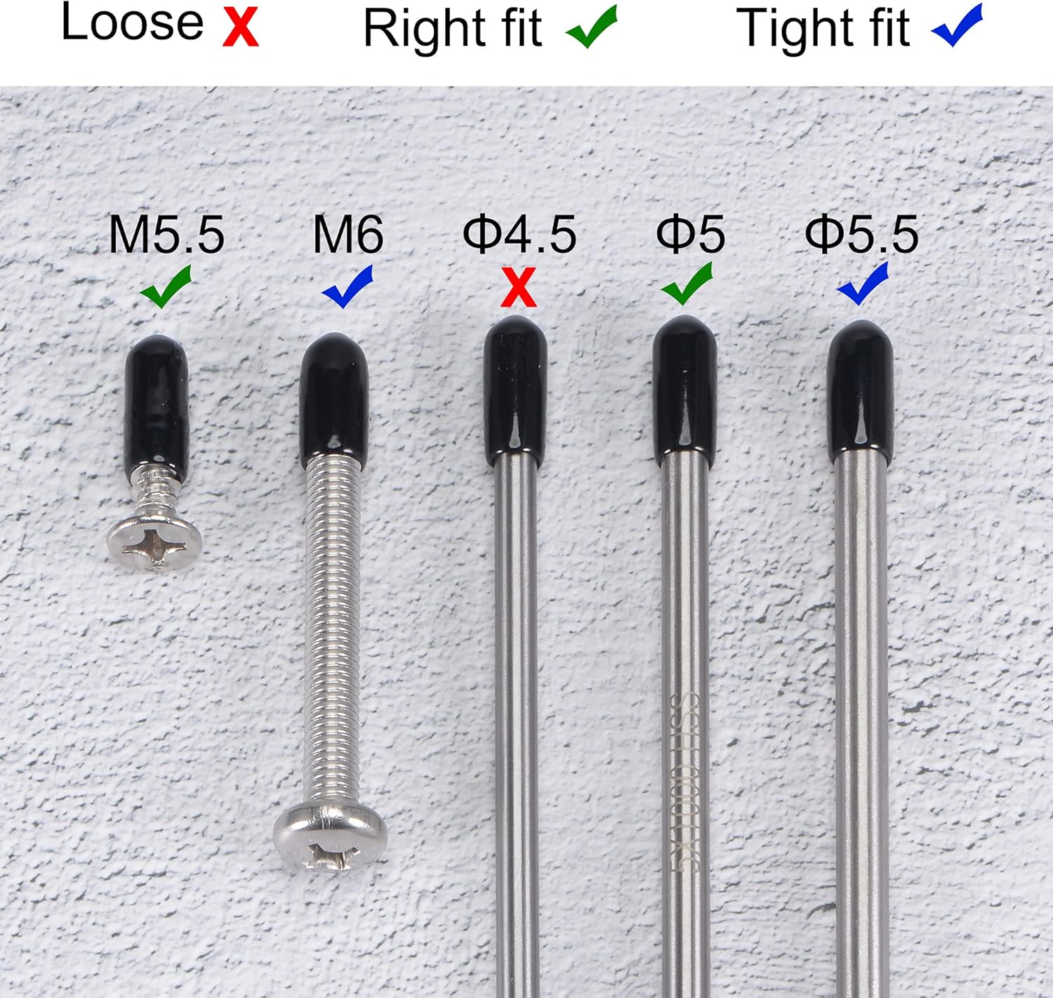 • 【Size Selection】Because rubber material is soft and elastic, we recommend choosing rubber end cap that is slightly smaller than the outer diameter of the product to be protected. For example: the outer diameter of your product is 9.8mm dia, choose the rubber cover of 9.5mm!