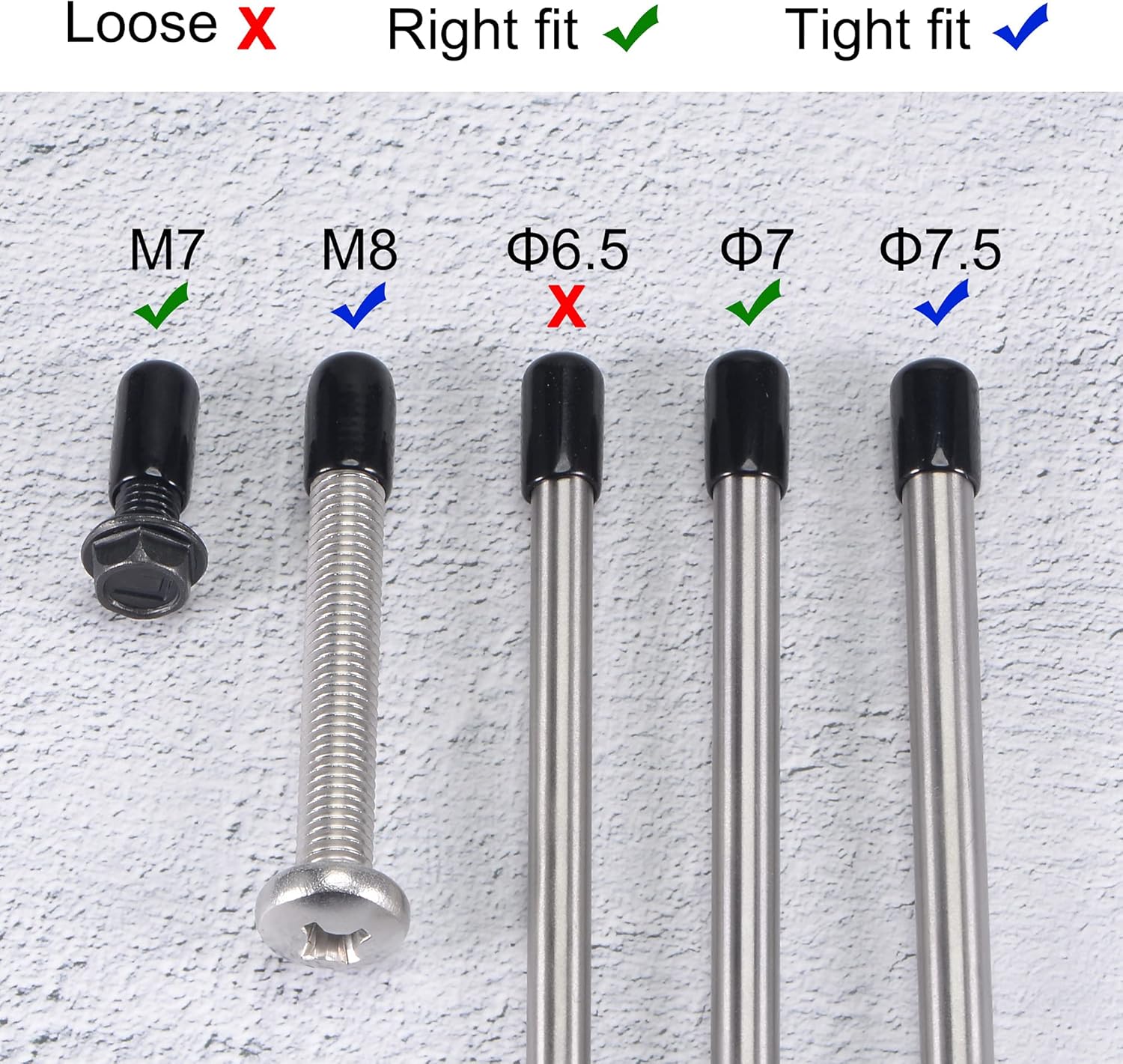 • 【Size Selection】Because rubber material is soft and elastic, we recommend choosing rubber end cap that is slightly smaller than the outer diameter of the product to be protected. For example: the outer diameter of your product is 9.8mm dia, choose the rubber cover of 9.5mm!