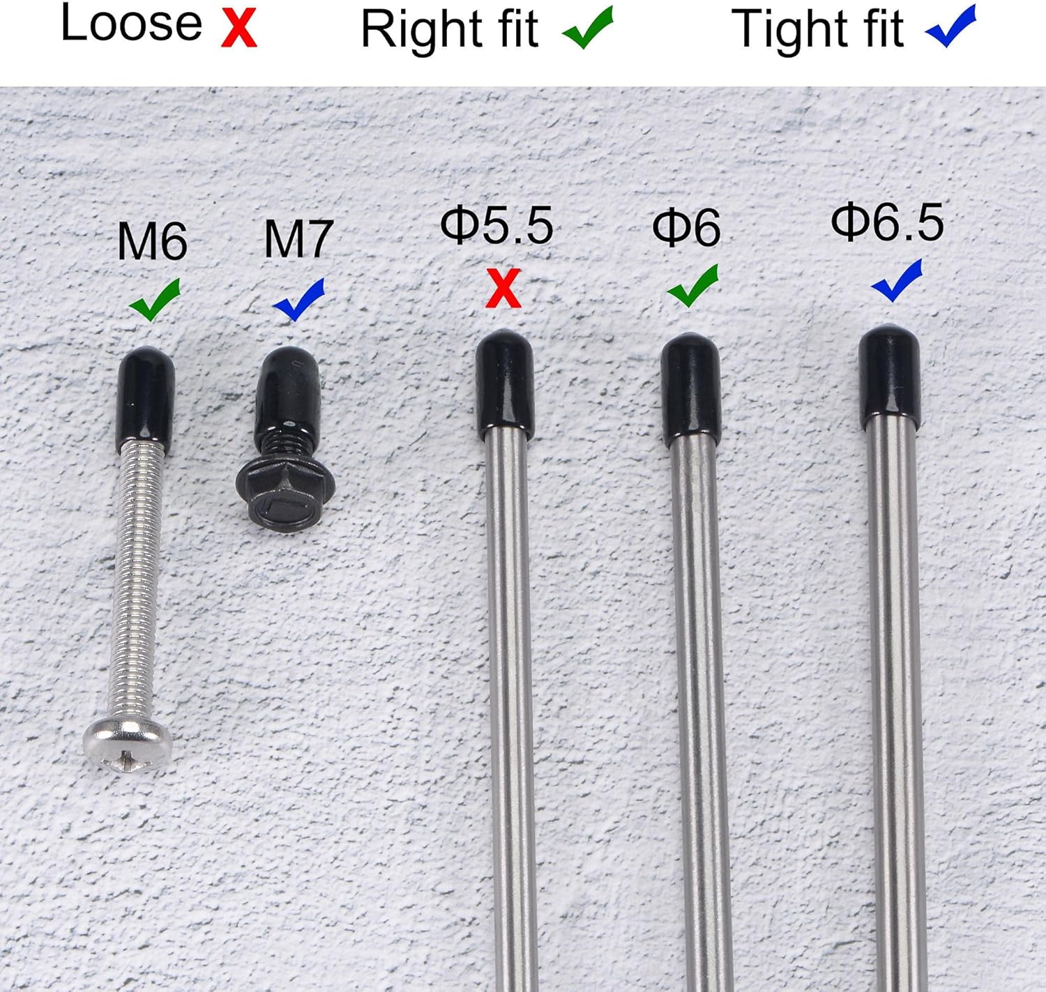 • 【Size Selection】Because rubber material is soft and elastic, we recommend choosing rubber end cap that is slightly smaller than the outer diameter of the product to be protected. For example: the outer diameter of your product is 9.8mm dia, choose the rubber cover of 9.5mm!