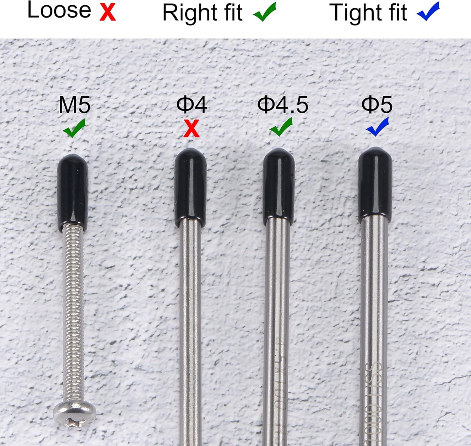 • 【Size Selection】Because rubber material is soft and elastic, we recommend choosing rubber end cap that is slightly smaller than the outer diameter of the product to be protected. For example: the outer diameter of your product is 9.8mm dia, choose the rubber cover of 9.5mm!