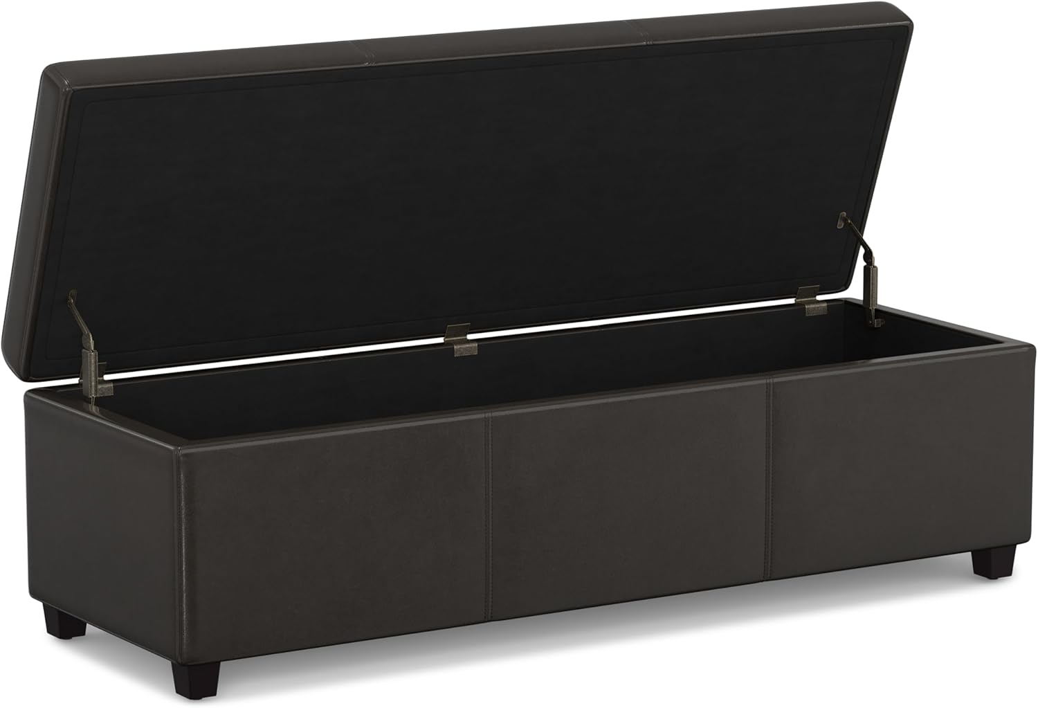 SIMPLIHOME Avalon 54 inch Wide Contemporary Rectangle Extra Large Storage Ottoman Bench in Tanners Brown Vegan Faux Leather, Assembled, for the Living Room, Entryway and Family Room