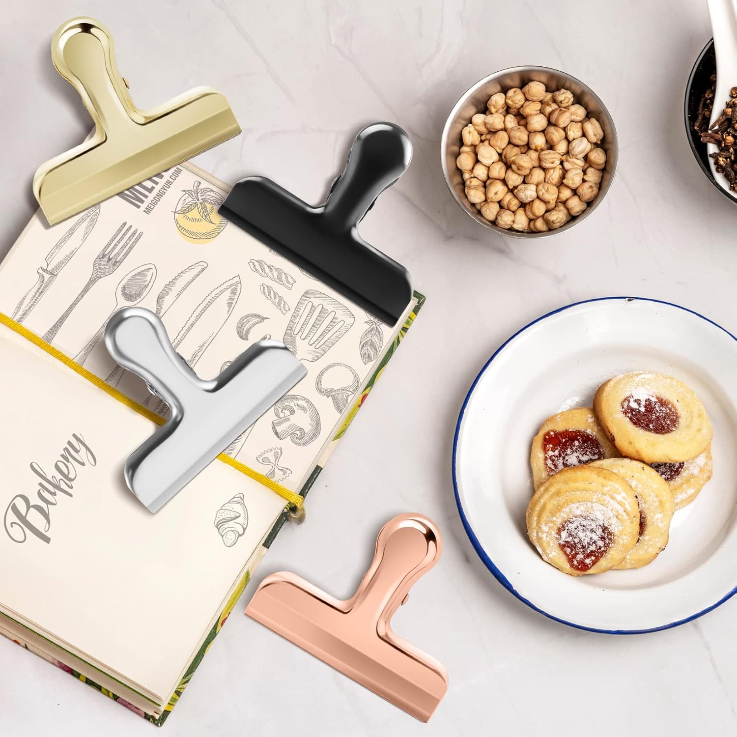 • 【TIGHT SEALING】Our chip bag clips are made with real stainless steel, including the spring, to guarantee a tight seal. You can use them to seal various bags, such as chips, cornflakes, milk powder, coffee beans, bread, and frozen vegetable bags in your kitchen. The clips can also be used in the office, garage, shed, or anywhere else you need a durable clip.