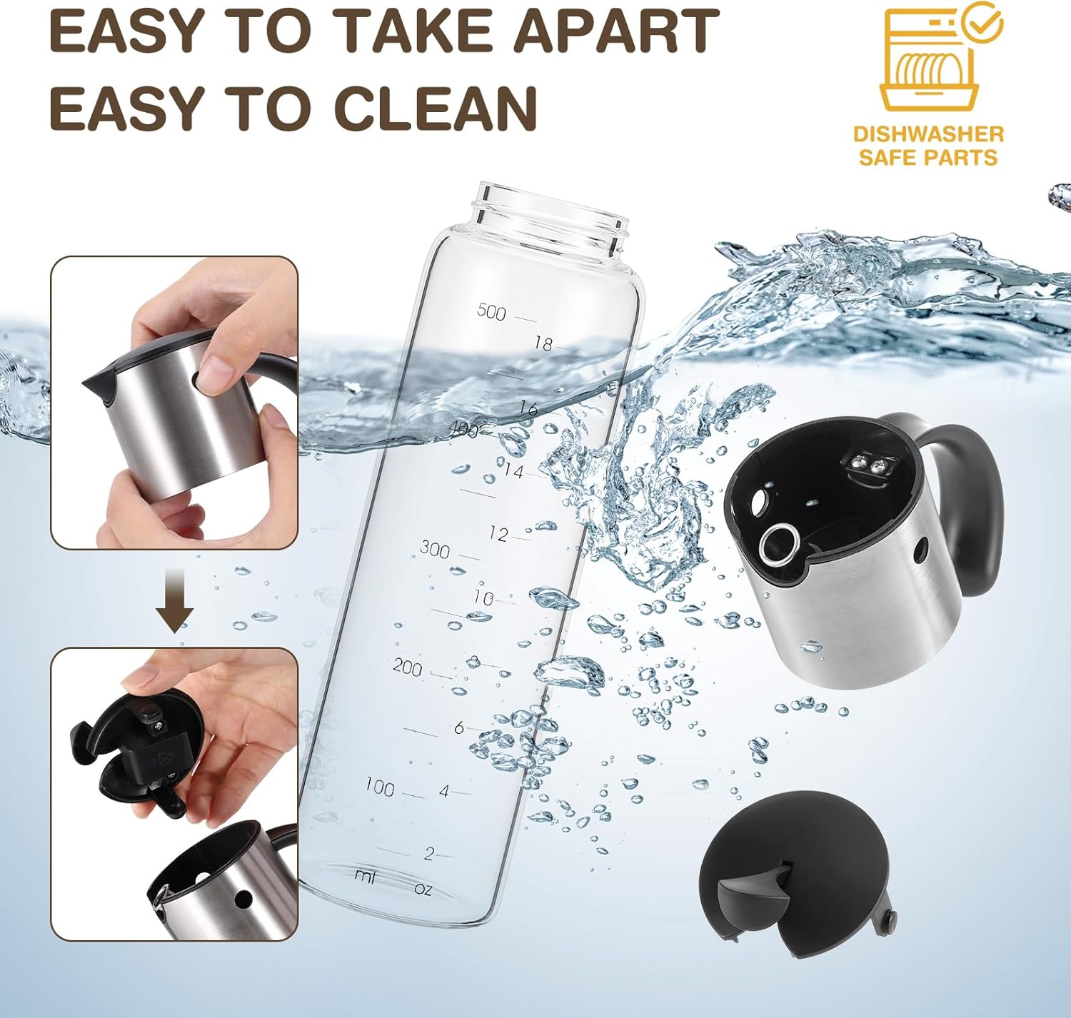 • Easy to Detach and clean - The bird lid of the vinegar dispenser can be detached by pressing the bird's eyes. The whole oil and vinegar dispenser set can use dishwasher or water to clean.