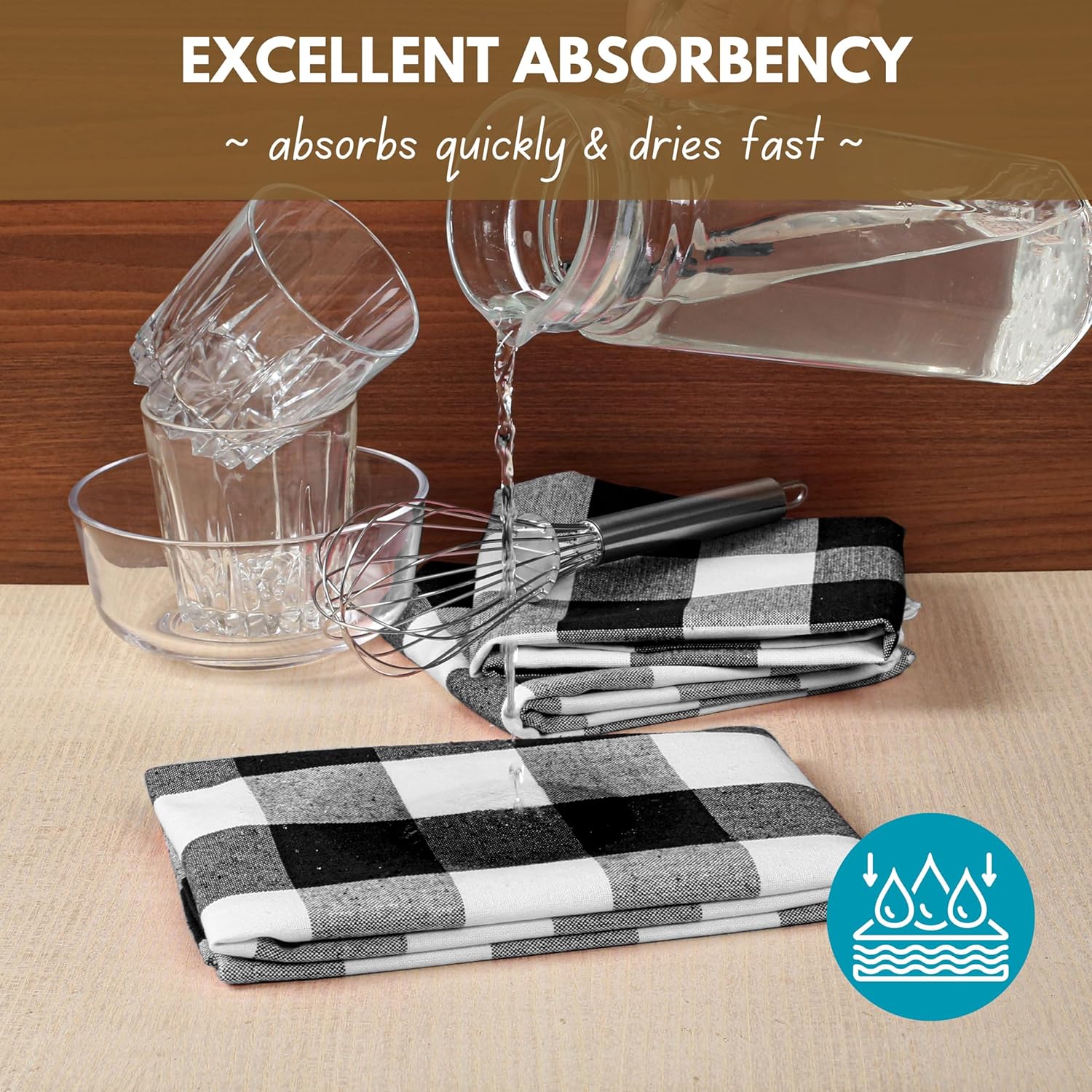 • SUPER ABSORBENT: Say goodbye to spills and wet dishes! Our towels soak up water and messes in a flash, making your kitchen cleanup quick and effortless.