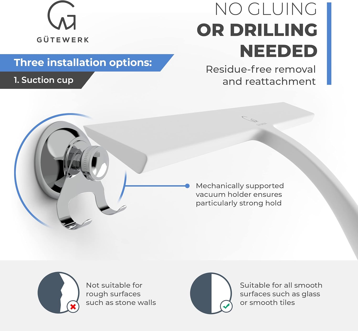 • MINIMALIST TIMELESS DESIGN - The GÜTEWERK glass squeegee is crafted with a matte white finish that impresses with its elegant timeless and smart design. In addition, the chrome-colored stainless-steel hook integrates well with any modern bathroom.
