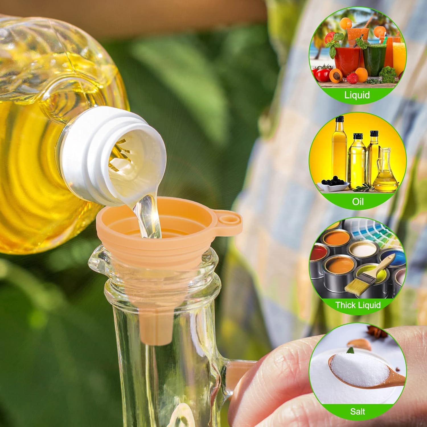 Kitchen Funnel Set 7 Pack, Collapsible Silicone Funnel for Filling Bottles, Beverage, Lab, Oil, Paint - Kitchen Gadgets Accessories Multicolor