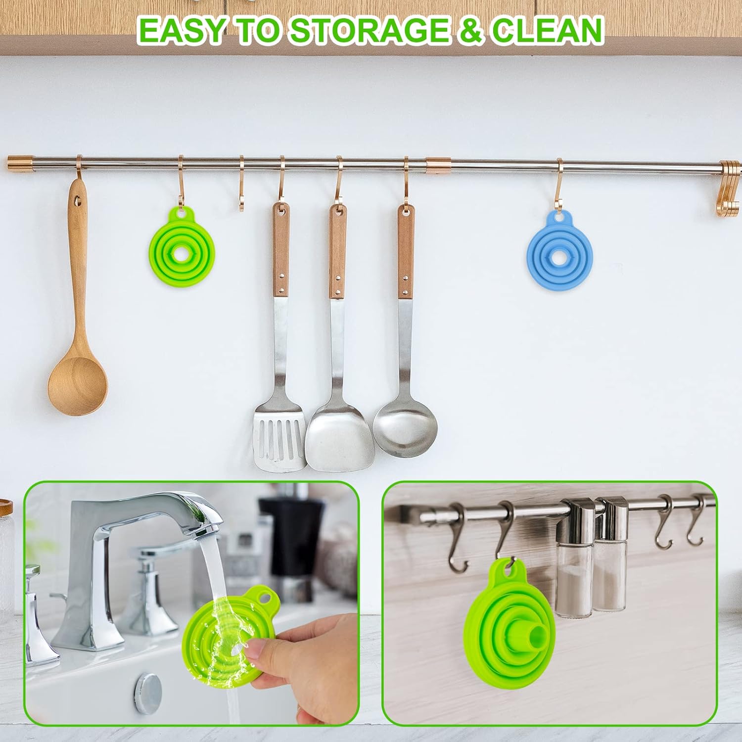 • 【Food Grade Kitchen Funnel Set】Soft and flexible funnels for kitchen use, premium food-Grade silicone, BPA Free, heat resistant -40°C to 250°C. No need to worry that the old plastic funnel may damage the health of your families.
