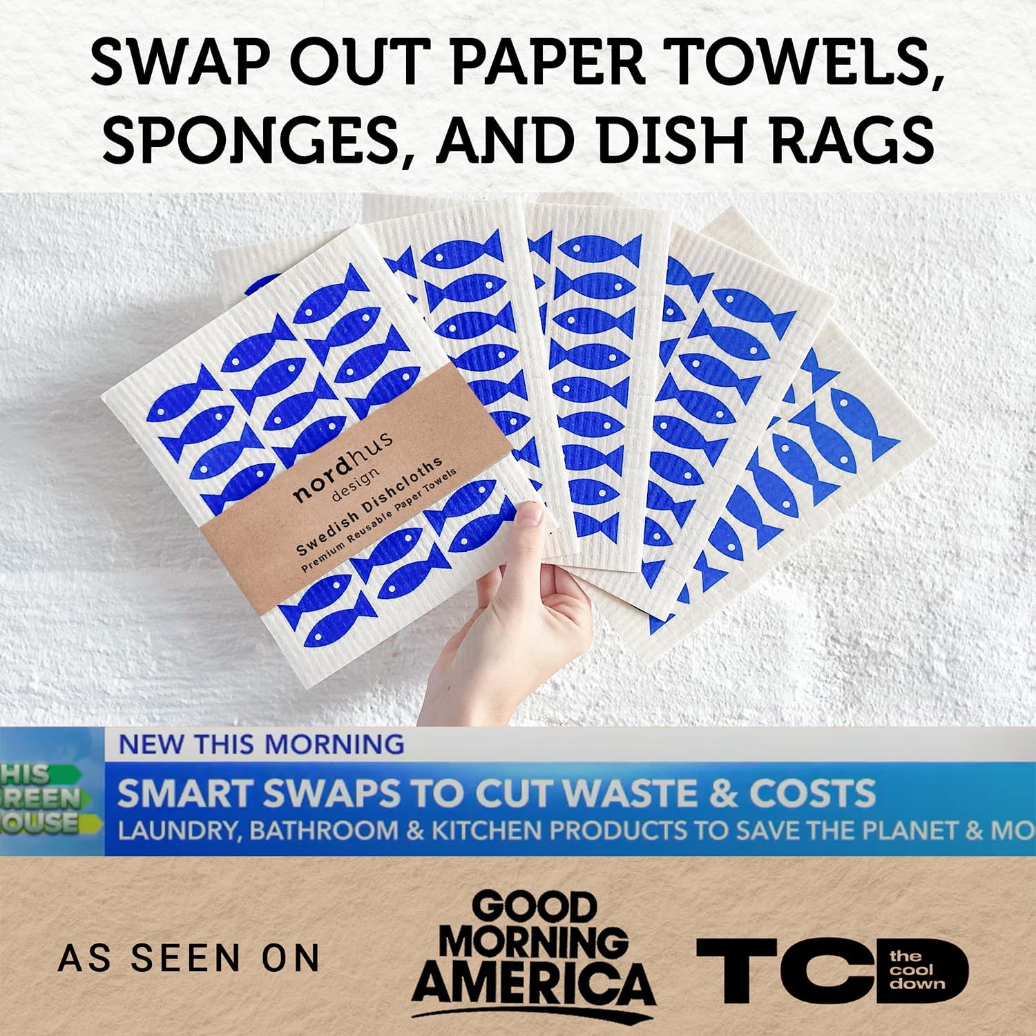 Nordhus Design Swedish Dishcloths,5 Fish Cloths, Made in Sweden - Reusable, Washable Cellulose Cotton Kitchen Cloths - Replace Paper Towels, Wipes, Sponges, Dish Rags